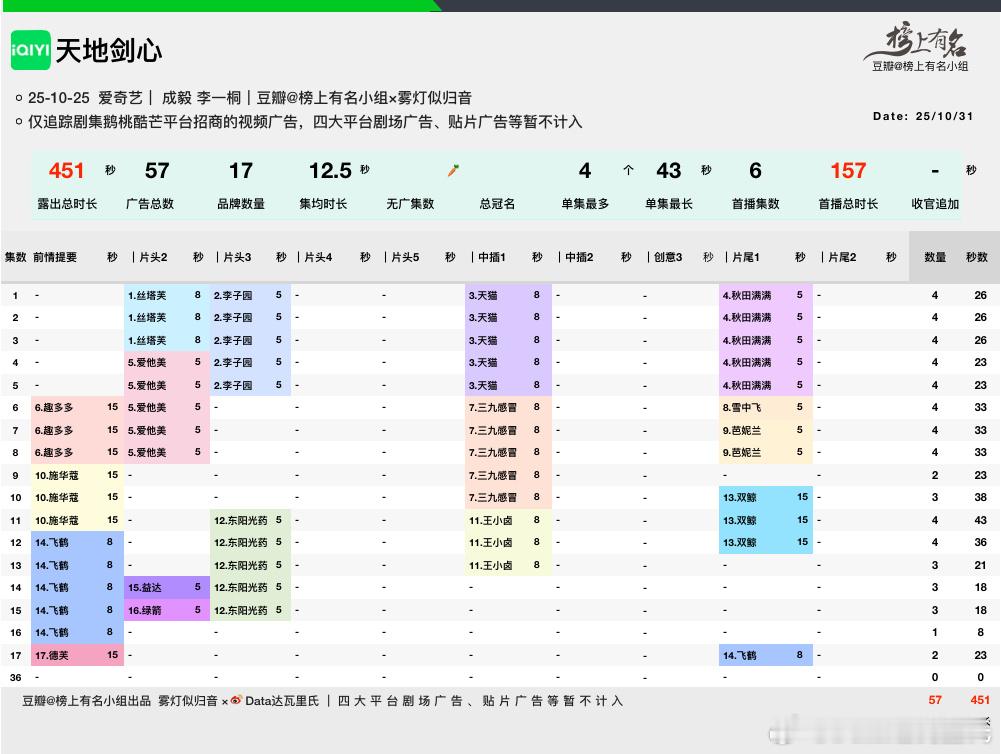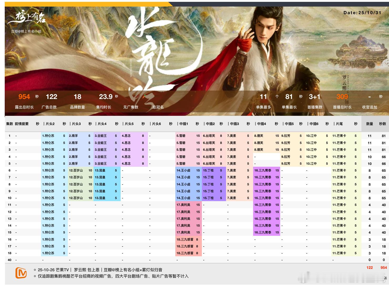 《水龙吟》18集,18品牌总954s,集均23.9s
