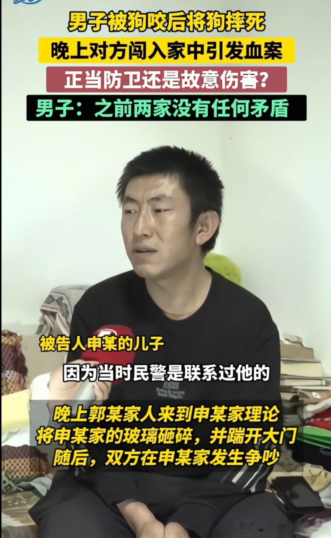 山西长治,申某被邻居狗咬后,出于愤怒把狗摔死了,而邻居拒绝调解,选择带着一大家人上门围殴申某家人,混乱中申某的父亲挥刀捅s了邻居郭某! 申某说,他们俩家平时没什么矛盾,关系也还挺好的,也知道自己有做得不对的地方,所以就想和郭某来协商解决这事儿,从下午一直等到晚上,对方却放话不会这样算了。 警察之前还告诉过他,让他们家多注意,平时把门窗关好,就是担心对方闹事,没想到就在他在派出所等待的期间,果然就发生了这样的事! 但申某坚持认为父亲是正当防卫,因为邻居郭某先是砸玻璃,然后又破坏大门进入,一群人打他父母,在他们告诉了对方已经报警了,但对方却没有停下来,挥刀只是让出于保护自身安全。 您怎么看呢,到底是故意伤害还是正当防护!