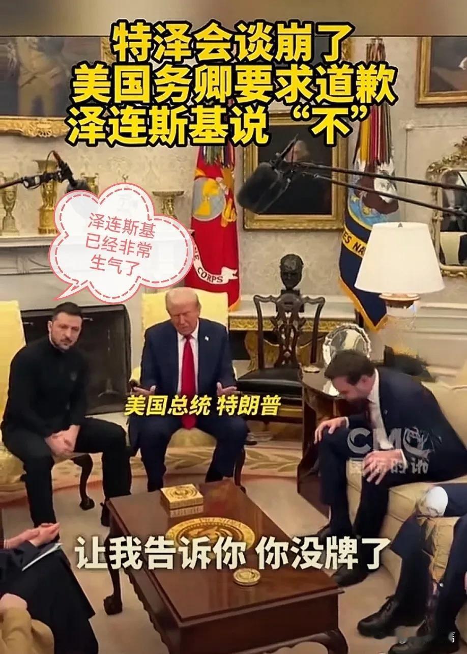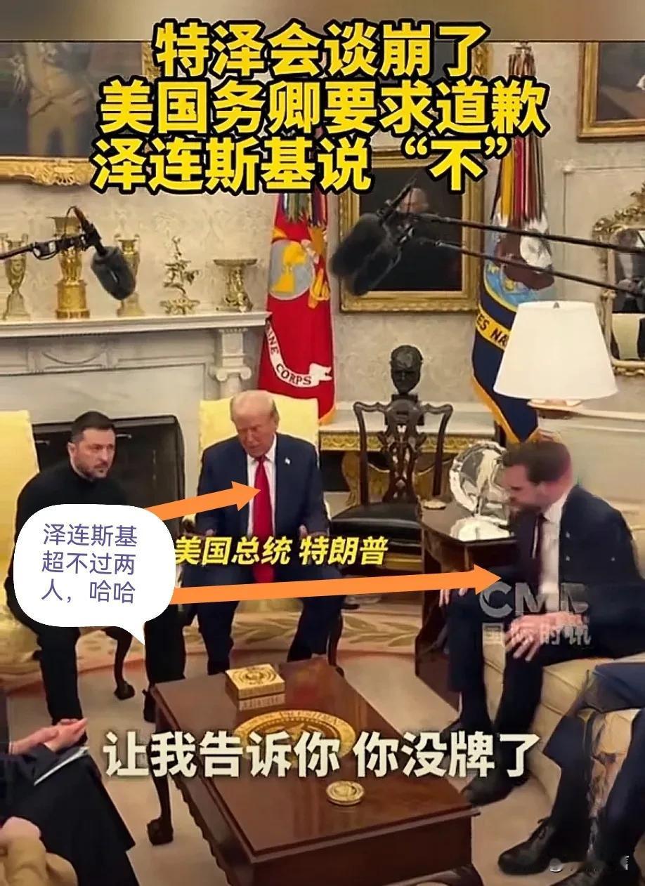 泽连斯基与特朗普谈崩了,他一对二,泽连斯基后面的如何走啊! 泽连斯基与特朗普在白宫会晤,双方已经失去了基本尊重,他一个人面对特朗普和副总统万斯,被怼得差点流泪了。 特朗普一直要求泽连斯基答应俄罗斯和北约,欧盟,美国的相关事宜,泽连斯基不同意。 特朗普的意思是:没有美国支援经济和武器,乌克兰早就被俄罗斯打败了。 而泽连斯基要求俄罗斯归还领土并给予乌克兰战争赔偿,泽连斯基也是不知道自己的位置,双方打了近二小时口水仗。乌克兰处境危险,如果真的没有援助,乌克兰真抵抗不了多久。 泽连斯基舌战特朗普和万斯