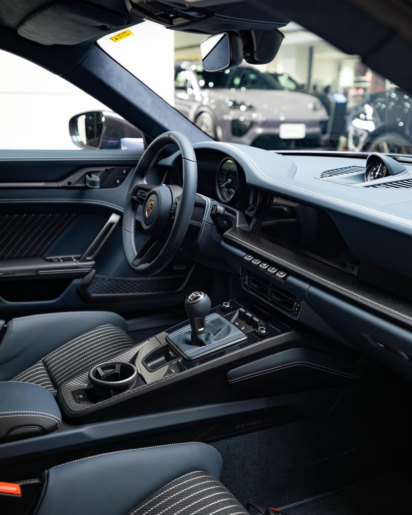关于992 S/T,这可能是目前为止我最喜欢的一款。涂装采用的PTS Plus普鲁士蓝金属(Preußischblau Met. 33K / 33X),这种颜色在80年代末至90年代初的911车型以及928车型上都有提供。