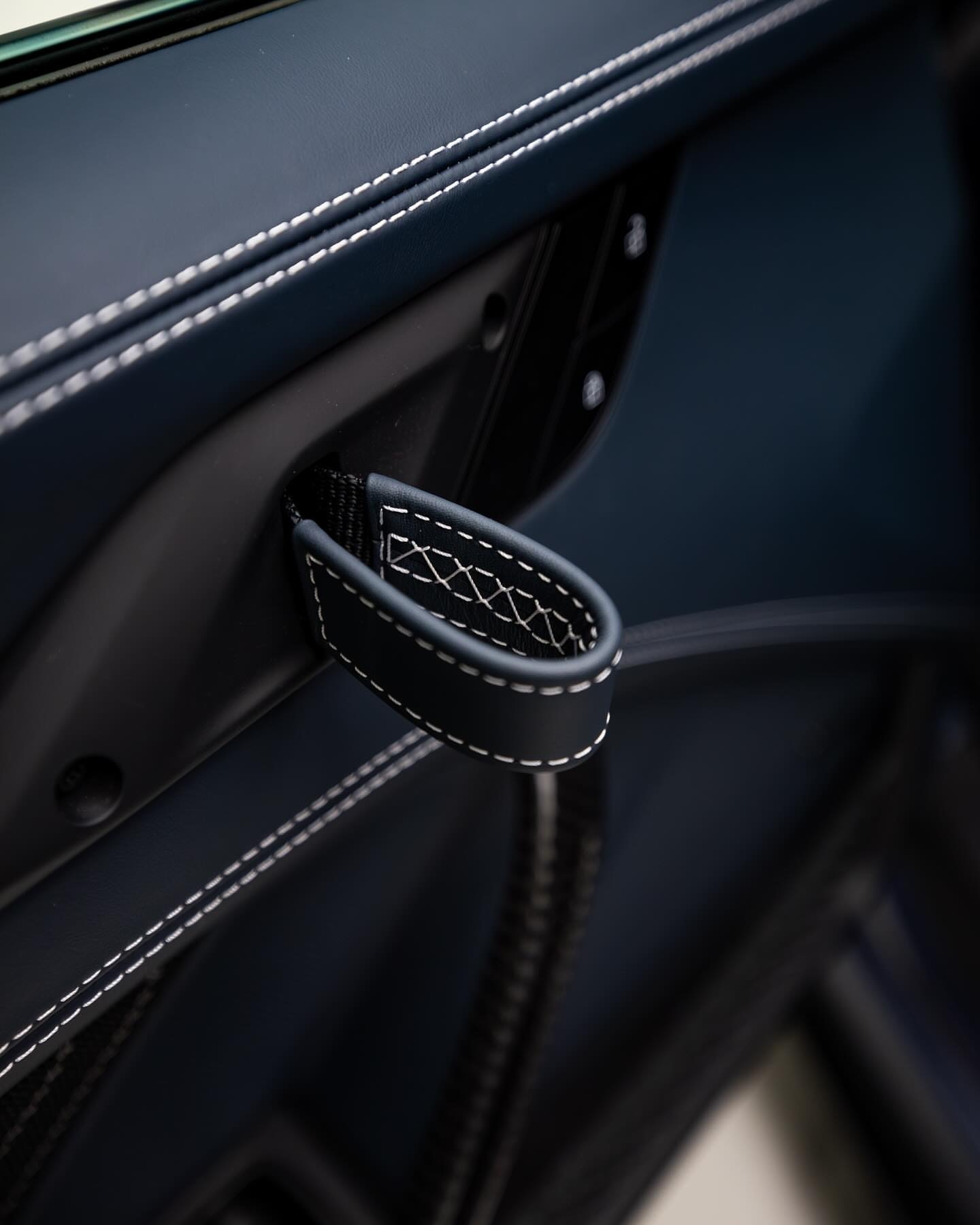 进入车内,LTS石墨蓝与黑色的搭配恰到好处,银色装饰更显品味,柱子上也增添了延长的皮革和缝线。