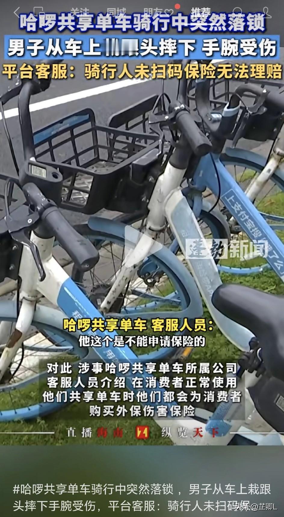 “偷骑”共享单车摔伤,索赔被拒!网友却一边倒:活该?男子本想“薅羊毛”,自己反被“薅”进医院! 10月18日,海南海口,陈先生回家途中,在沙滩上看到了一辆共享单车。单车的二维码已经被破坏,但陈先生试了试刹车正常、脚蹬正常,能正常上路。 于是,陈先生抱着这种侥幸的心理,骑上车回家。 只是,他骑行刚半个小时,前轮突然被锁死,没有准备的陈先生一个跟头摔下来。为了护住自己的头,慌乱中选择双手触地,导致双手手腕受伤。 截止记者采访,十来天过去了还不能正常发力。 起初,陈先生以为,是这辆共享单车前一个使用者远程还车导致车辆落锁。可是在再三确认车辆无法扫码后,他怀疑是车辆所属公司的原因。 涉事平台称将会调查落锁原因,但因为骑行人未扫码,所以保险无法理赔。 平台称,他们为消费者购买了意外伤害保险,保险起始时间是用户扫码开锁时间;终止时间为用户锁车时间。 但像陈先生这种没有按照使用规定扫码骑行,导致发生意外的情况,相对来说比较特殊。 虽然陈先生受伤了,应该属于受害者,但广大网友并不买账: “便宜没占着,还受伤了。” “没扫码没话说!” “偷车还有理!” “改明儿小偷去偷东西摔伤了,是不是也可以申 请赔偿?” “他是偷车,平台应该报警!” 平台是否有漏洞,暂没有看到平台允诺的调查结果,但陈先生的意外,第一责任人是他自己,这是无可反驳的。 作为用户,需遵守用车规则,避免侥幸心理;而平台也需加强车辆维护与风险提示,同时明确权责边界,防止类似纠纷。 大家说是不是? 信息来源于直播海南,侵联删!