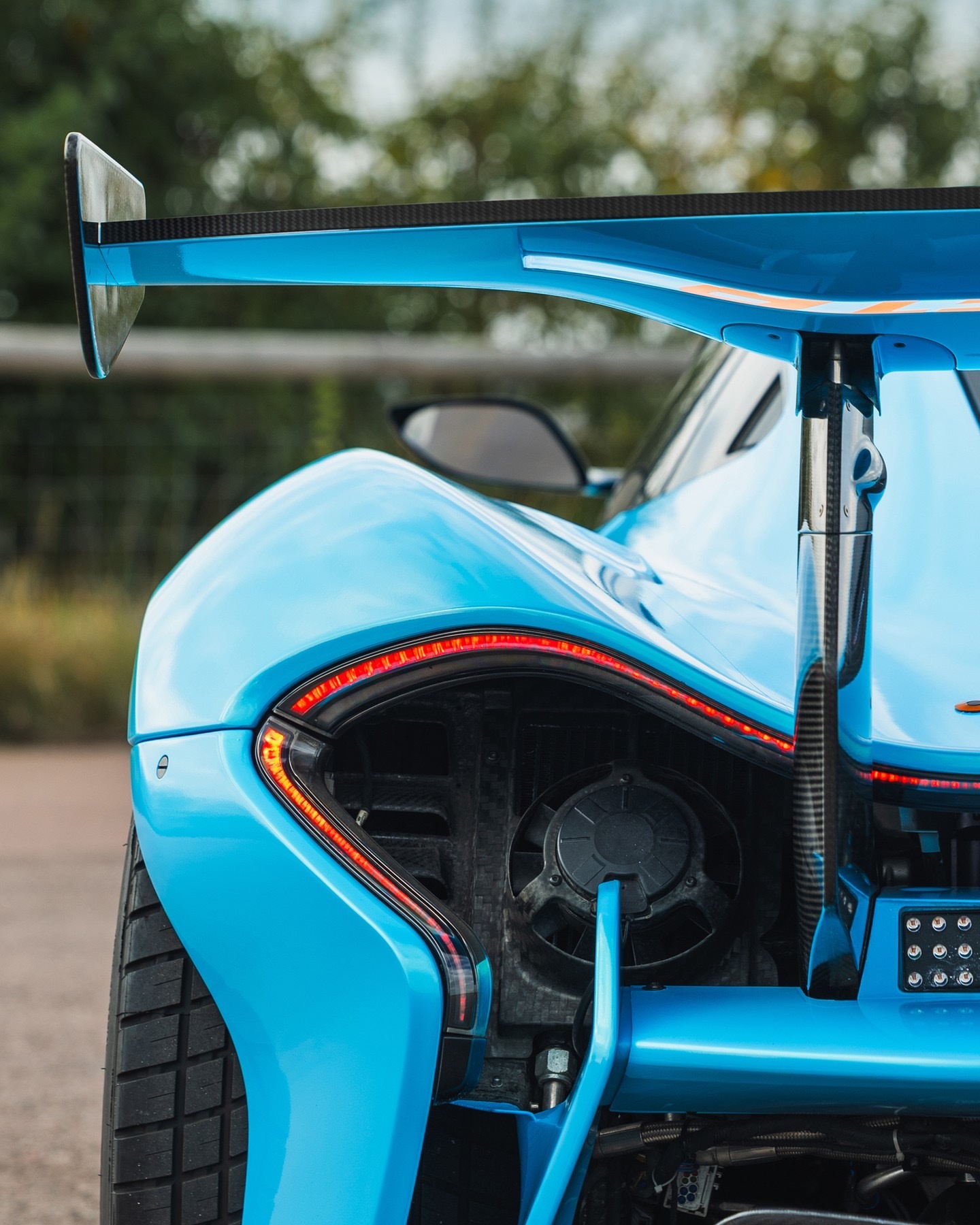 为庆祝F1 GTR在勒芒胜利20周年而打造,McLaren P1 GTR是对性能极限的深度研究——当规则被放在维修区时。这是仅有的58辆中的第014号车,以锆石蓝为基调,辅以哑光黑色装饰。搭载一台双涡轮增压V8引擎和一台电动机,综合功率达到986马力,是21世纪最独家且性能卓越的赛道用车之一。