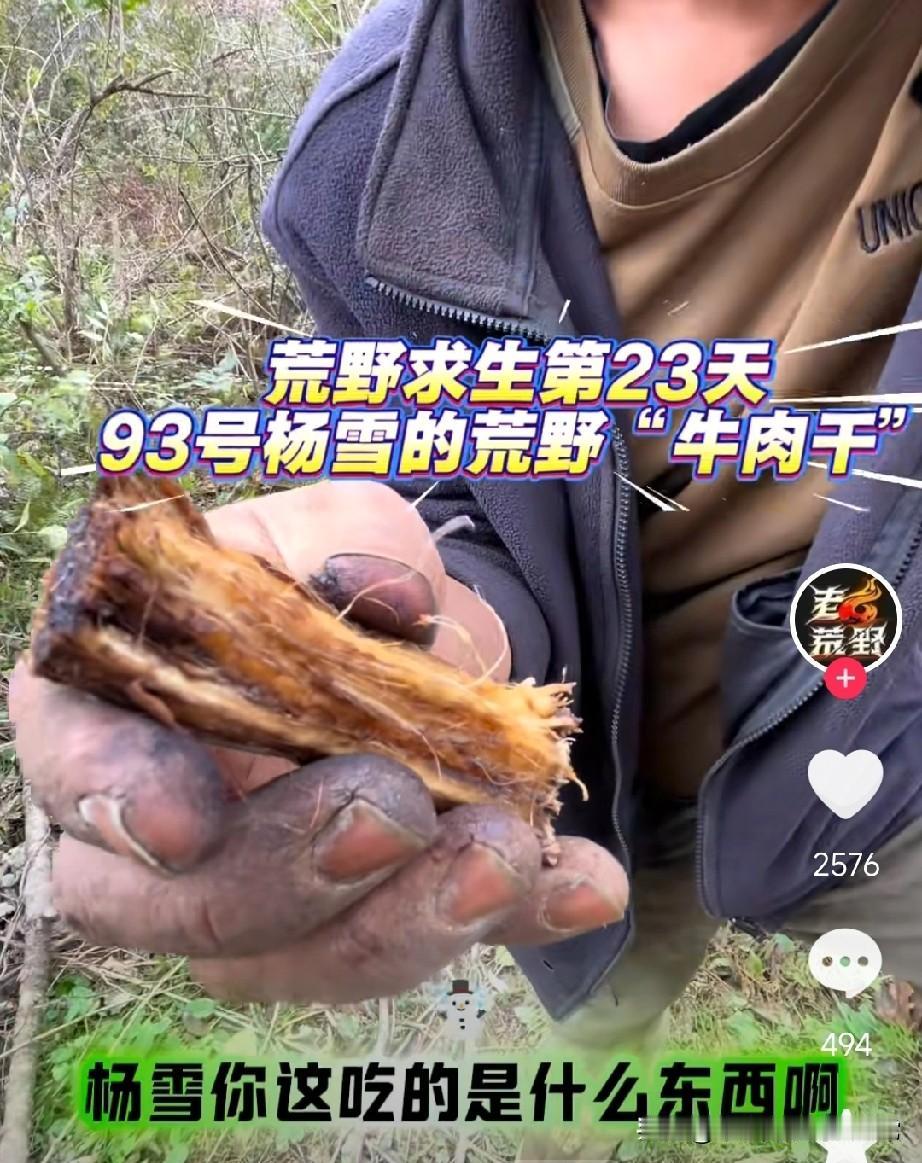 荒野求生第23天,他把树根吃出牛肉干味! 快看这离谱操作!荒野求生第23天,93号杨雪把树根啃出了“牛肉干”的既视感,手上脏得黢黑,还吃得津津有味,这画面谁看了不瞳孔地震? 在张家界七星山的荒野里,没吃没喝只能刨树根,换做普通人早扛不住了。可他硬是把树根吃出了“硬核零食”的感觉,这求生欲也太绝了!有人说这是真汉子在挑战极限,也有人吐槽是博眼球的剧本。 咱就说,为了流量连树根都能当“牛肉干”吃,这荒野求生到底是真硬核还是真演戏?你觉得这种求生挑战是励志还是离谱?