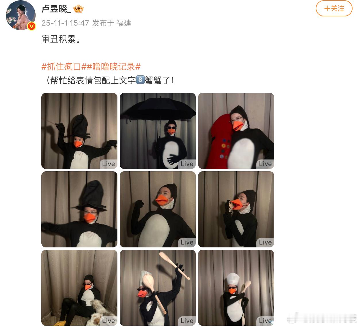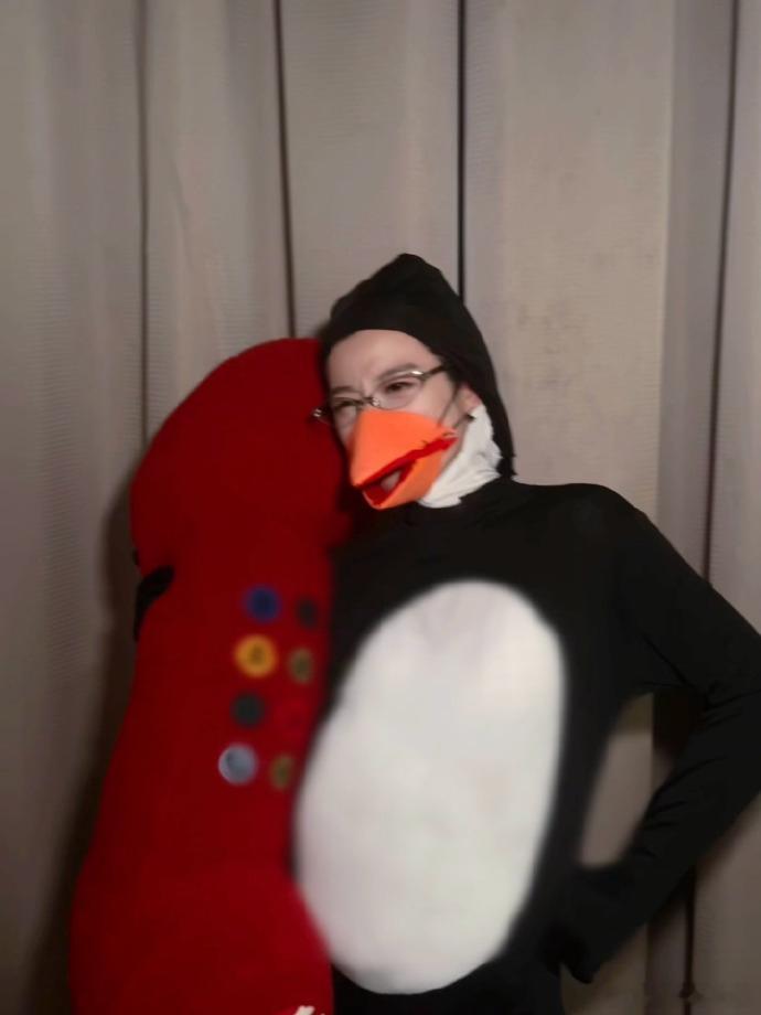 卢昱晓cos表情包企鹅 卢昱晓cos了最近很火的表情包企鹅,调侃“审丑积累”,哈哈哈哈哈哈好抽象!
