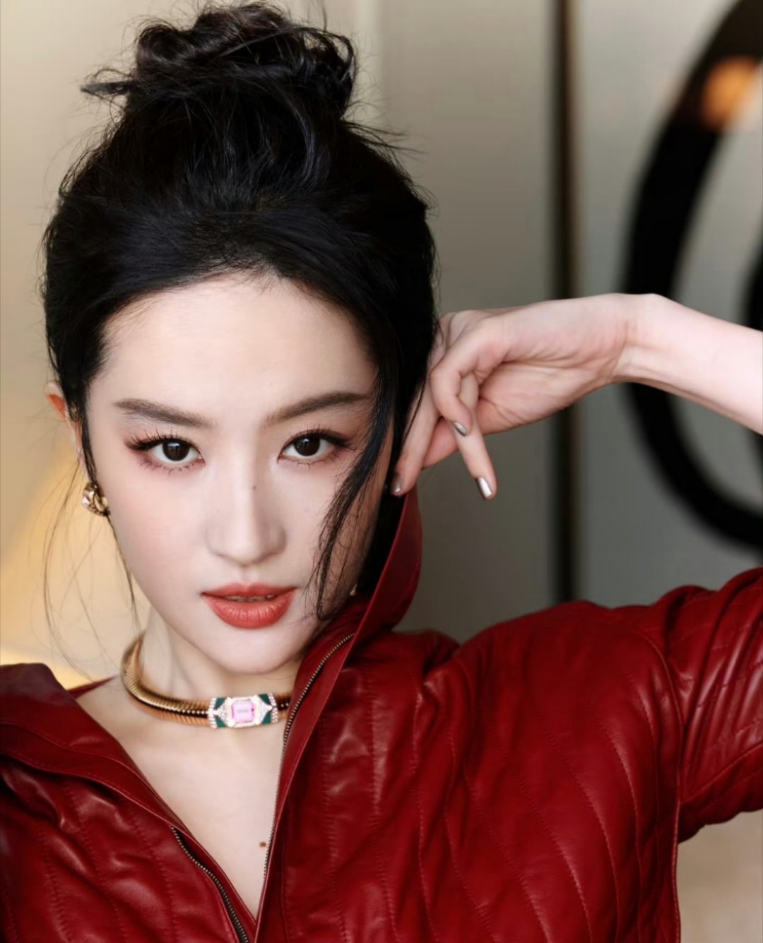 刘亦菲把死亡玫粉穿出了定制款的感觉,这种颜色普通人穿上分分钟黑三度,她居然能穿出