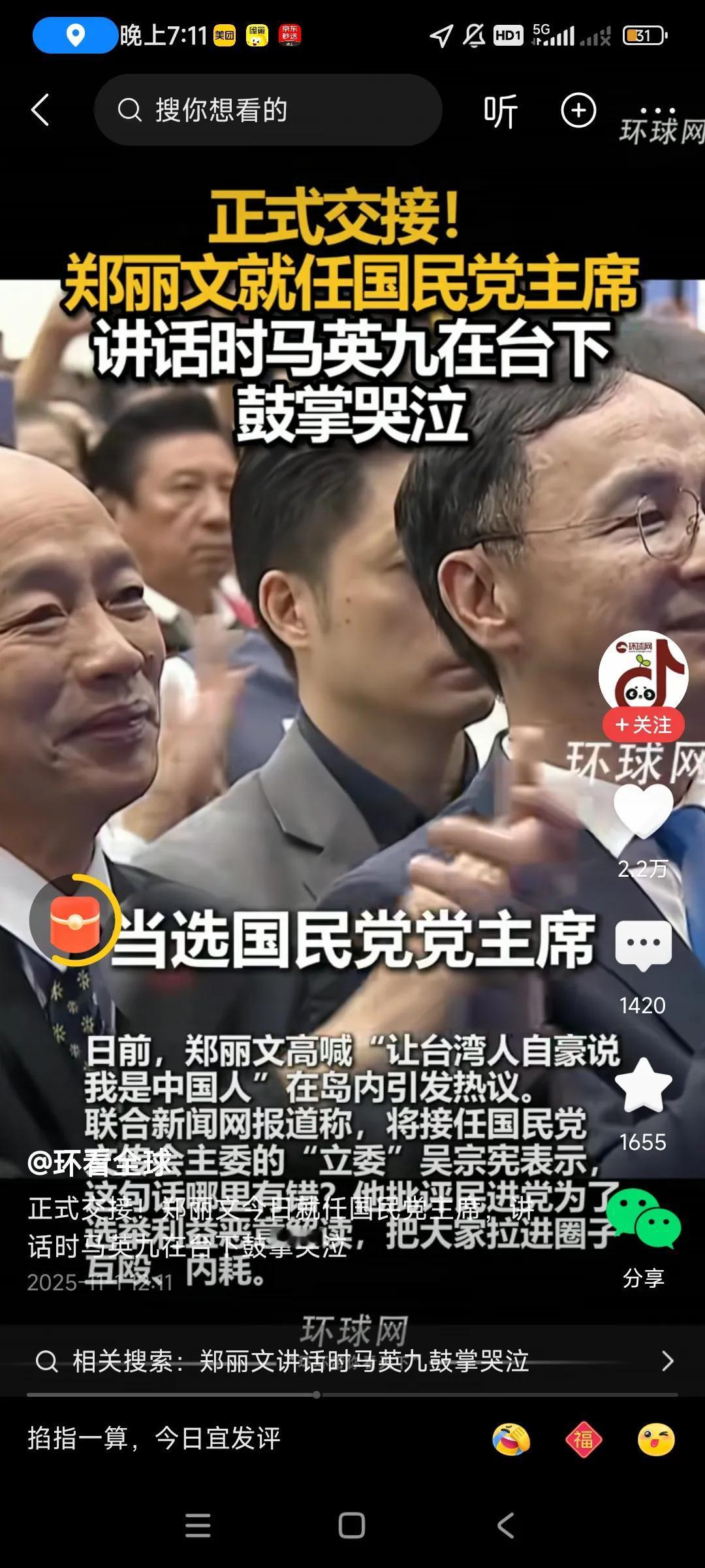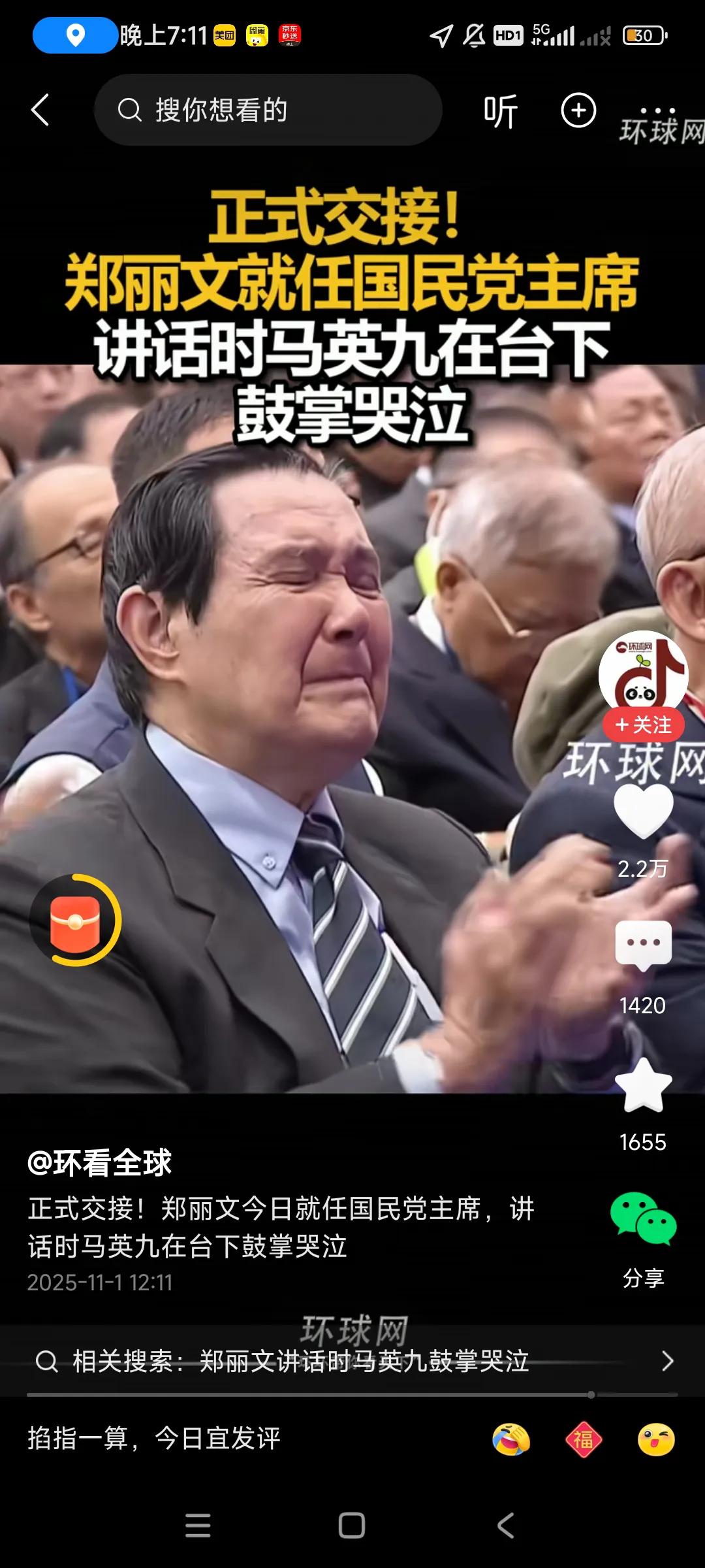 这个国民党换届选举,选出新主席,多开心的事,怎么马英九激动的流下了眼泪,,, 他真的是一个好人,任台湾领导人8年,想方方面面照顾到,结果事与愿违,反而效果不好,,[捂脸][捂脸] 现在民进党气势很足,欺负国民党,老马有心无力,[捂脸][捂脸][捂脸],心中不安,这次选出新主席,能力很强,他看到了希望,实现了更新换代,70后正式走上舞台,老马作为50后,逐渐退出历史舞台了,, 他不禁心中感叹,岁月不饶人,自己老了,,希望年轻一代超过自己,2028年大选,打败民进党!