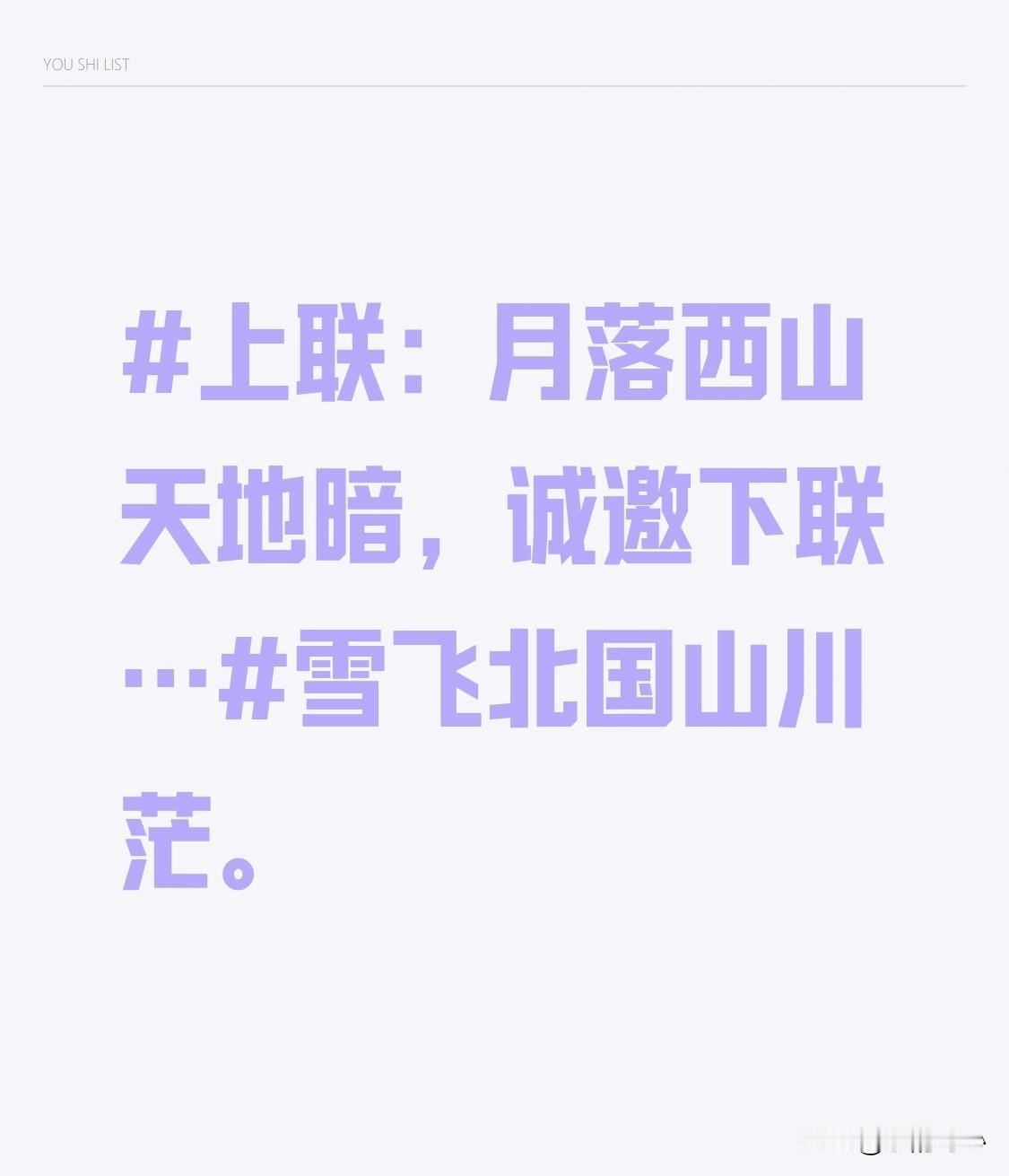 上联:月落西山天地暗,诚邀下联…雪飞北国山川茫。