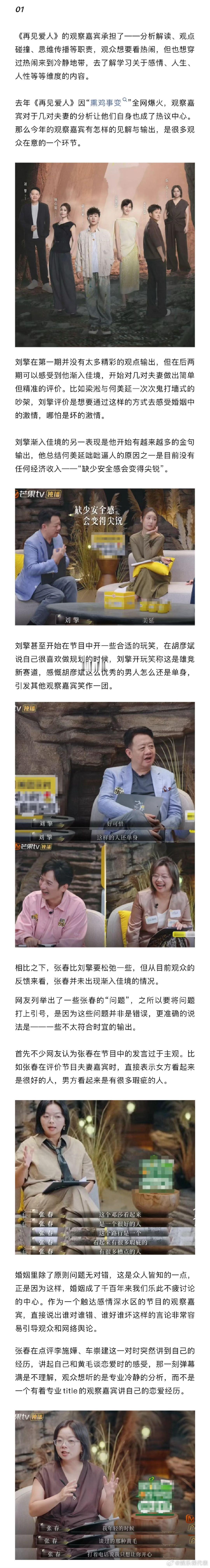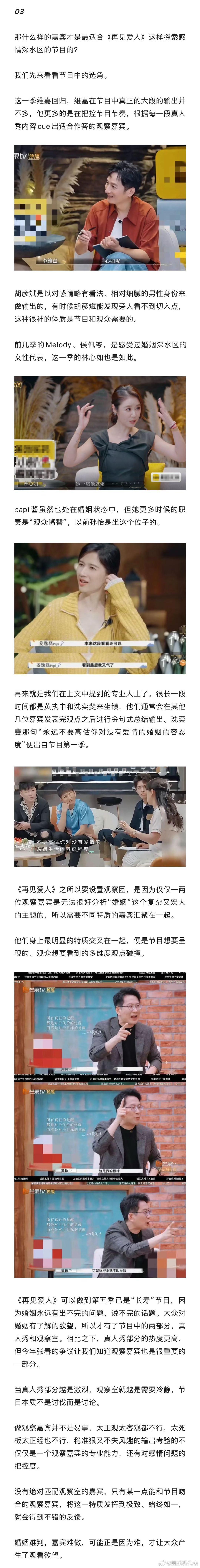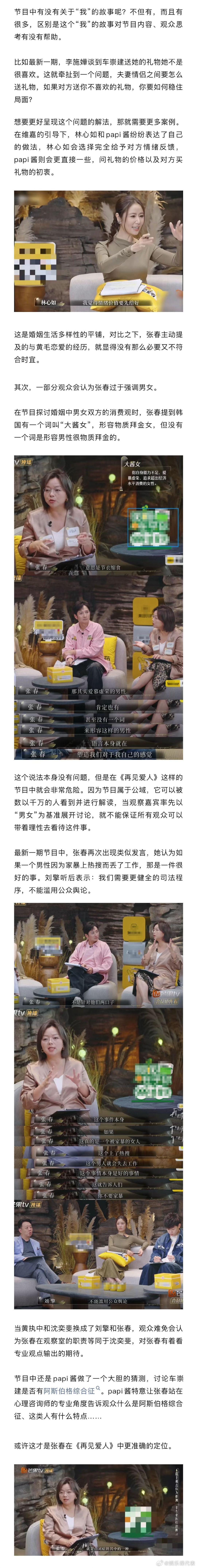 什么样的观察嘉宾适合再见爱人为什么张春在再见爱人水土不服 张春在播客界有很好的口碑,但当她成为《再见爱人5》的观察嘉宾明显出现了水土不服的情况。作为一个围绕感情深水区展开的节目,可能没有哪位观察嘉宾是绝对符合的,只有观察嘉宾身上的某一点特质和节目相匹配才能有最优解。