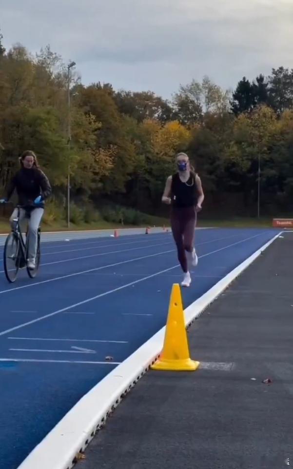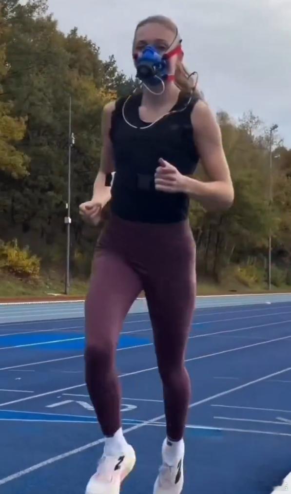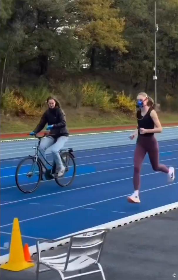菲姆克-波尔已经开始备战下赛季的女子800米比赛,戴着个高科技面罩。