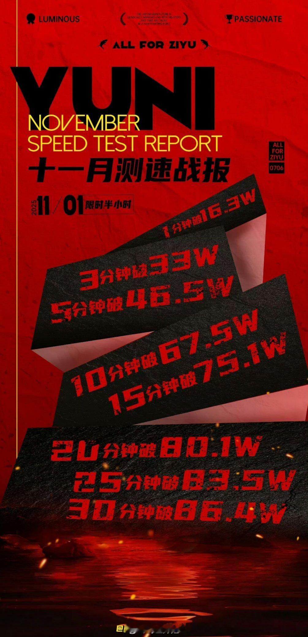 梓渝粉丝发了十一月的测速战报,一分钟破16.3w,三分钟破33w,五分钟破46.5w,梓渝作为暑期新爆爆,客观评价一下,这个数据放在内娱算什么水平呢?