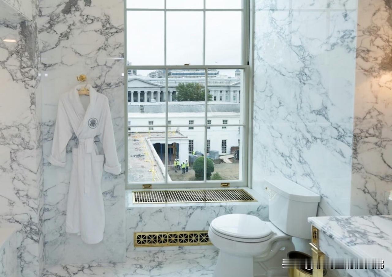 这太离谱了吧!特朗普发布了一张白宫马桶照片, 难道是在暗示他拉屎时都在监督白宫东翼拆除情况吗? 此前有新闻报道称,特朗普下令对白宫东翼的宴会厅进行扩建,因此目前那块儿正在大兴土木,有望在特朗普第二任期结束前完工。