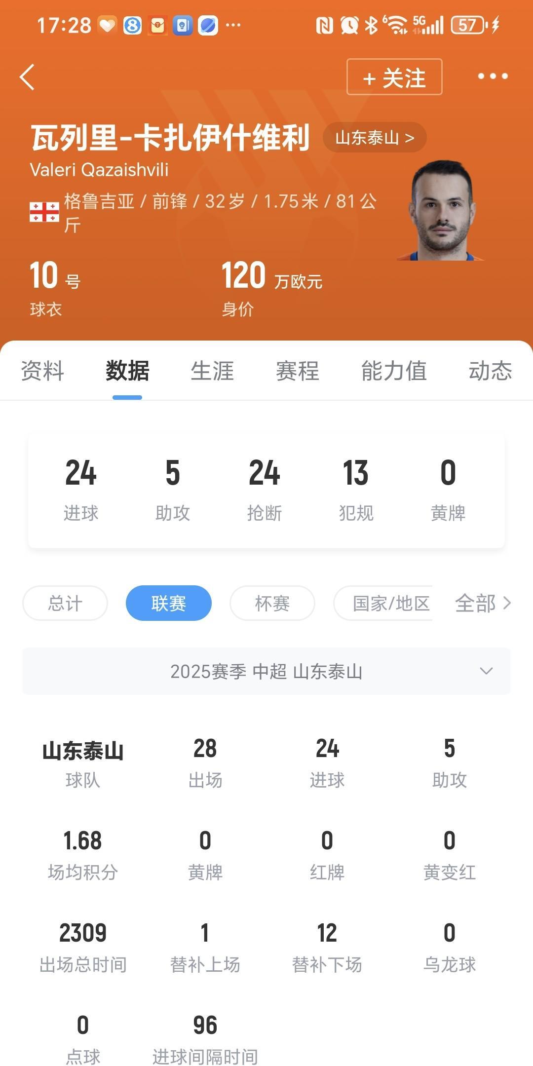 29轮比赛,24球5助攻,山东泰山的外援卡扎有望拿下本赛季的金靴。但是比较奇怪,山东泰山为什么不与卡扎尽快续约,让人有点看不懂。 本赛季中超联赛倒数第二轮,在多名年轻球员和主教练缺阵的情况下,山东泰山主场2:1战胜天津津门虎。值得一提的是,卡扎打进一球,还踢丢了一粒点球,目前打进25球,领跑射手榜。北京国安外援法比奥打进24球,落后一球紧随其后。 那么问题来了,您认为山东泰山应该与卡扎续约吗?#中国足球#
