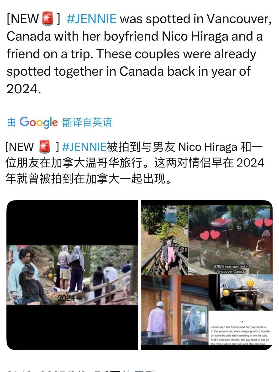 好幸福!JENNIE被拍到与男友 Nico Hiraga 和一位朋友在加拿大温哥华旅行!