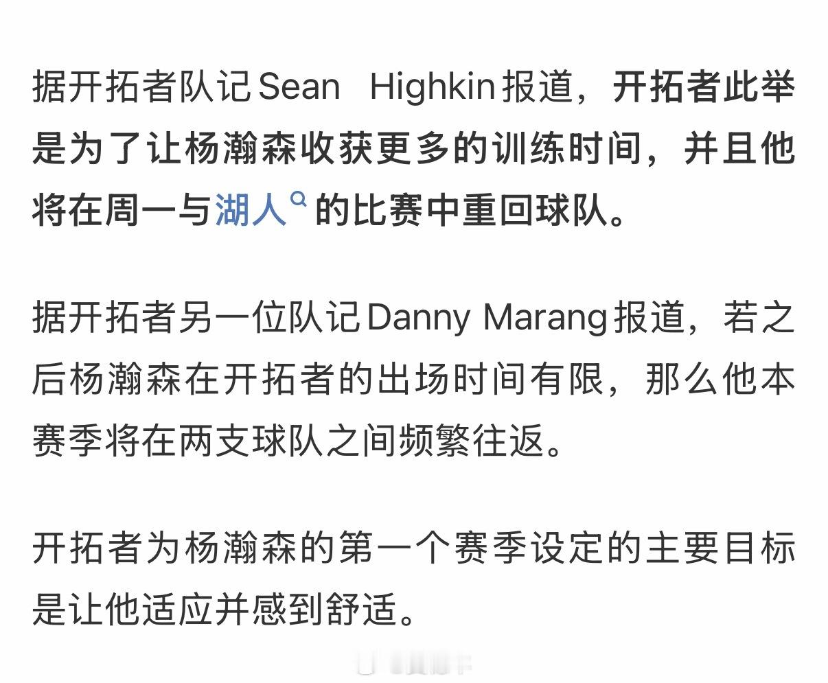 据报道,杨瀚森前往NBA发展联盟的撕裂之城混音队参加额外的加练,将在周一与湖人的比赛中回到开拓者队内。杨瀚森将派至发展联盟进行训练森临其境开拓季新赛季篮不住