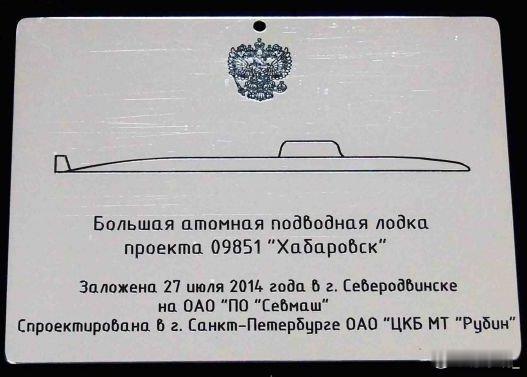 俄海军“哈巴罗夫斯克”号特种核潜艇昨天在北德文斯克举行下水仪式。此艇型号为09851,性能和用途可能与已服役的09852型“别尔哥罗德”号特种核潜艇类似,即携带一艘小型核潜艇,以及“波塞冬”核动力核弹头鱼雷。