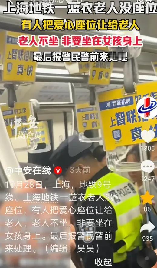 流氓变老了?上海地铁9号线最近曝出的视频,着实让人瞠目结舌。 一位蓝衣大爷上车后,明明有人给他让了爱心座位,他偏不坐,非要一屁股坐在旁边年轻女孩的腿上。更气人的是,他还抓着手环故意晃动身体,脸上带着诡异的笑。旁边大哥几次推开他,他却变本加厉,最后女孩只能报警。 有知情人爆料,这大爷在小区里就常有不雅行为,邻居们都绕着他走。让人心疼的是,受害女孩其实患有双相情感障碍,一直在控制情绪,却无端遭受这种刺激。 不是老人变坏了,是坏人变老了!这种事儿最后往往不了了之,批评教育了事,违法成本太低。 尊老爱幼是传统美德,但尊重应该是相互的。年龄不能成为耍流氓的护身符,法律面前人人平等,不能因为施害者是老人就让受害者忍气吞声。 希望这次事件能有个公正的处理结果,也让更多人明白。公共场合的底线,不容任何人以任何理由践踏。