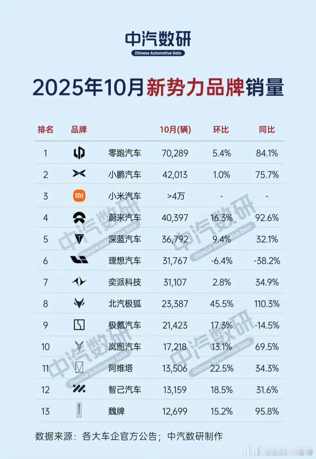 零跑汽车10月又又又创新高10月交付70289台9月份才突破的6万台10月就破7