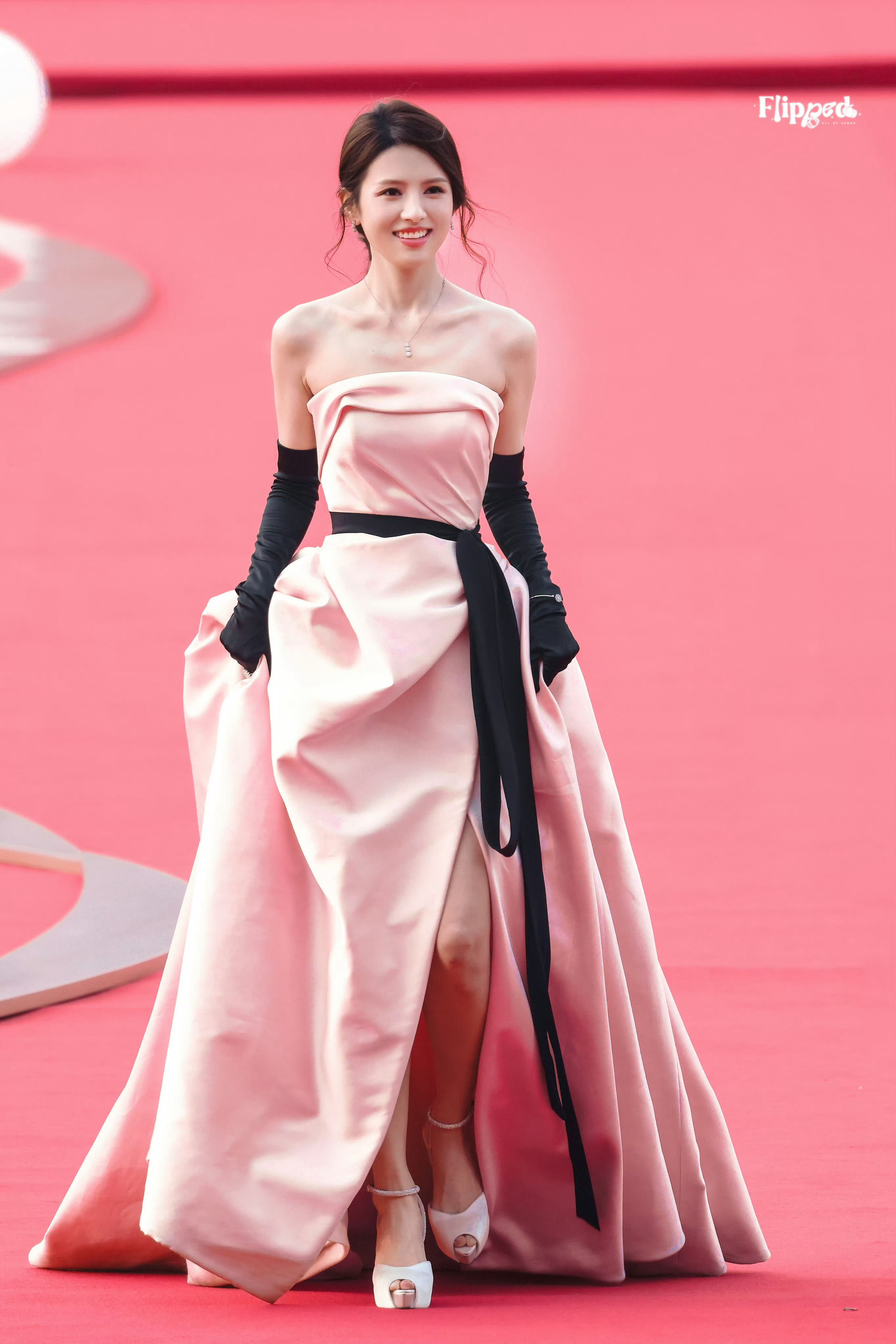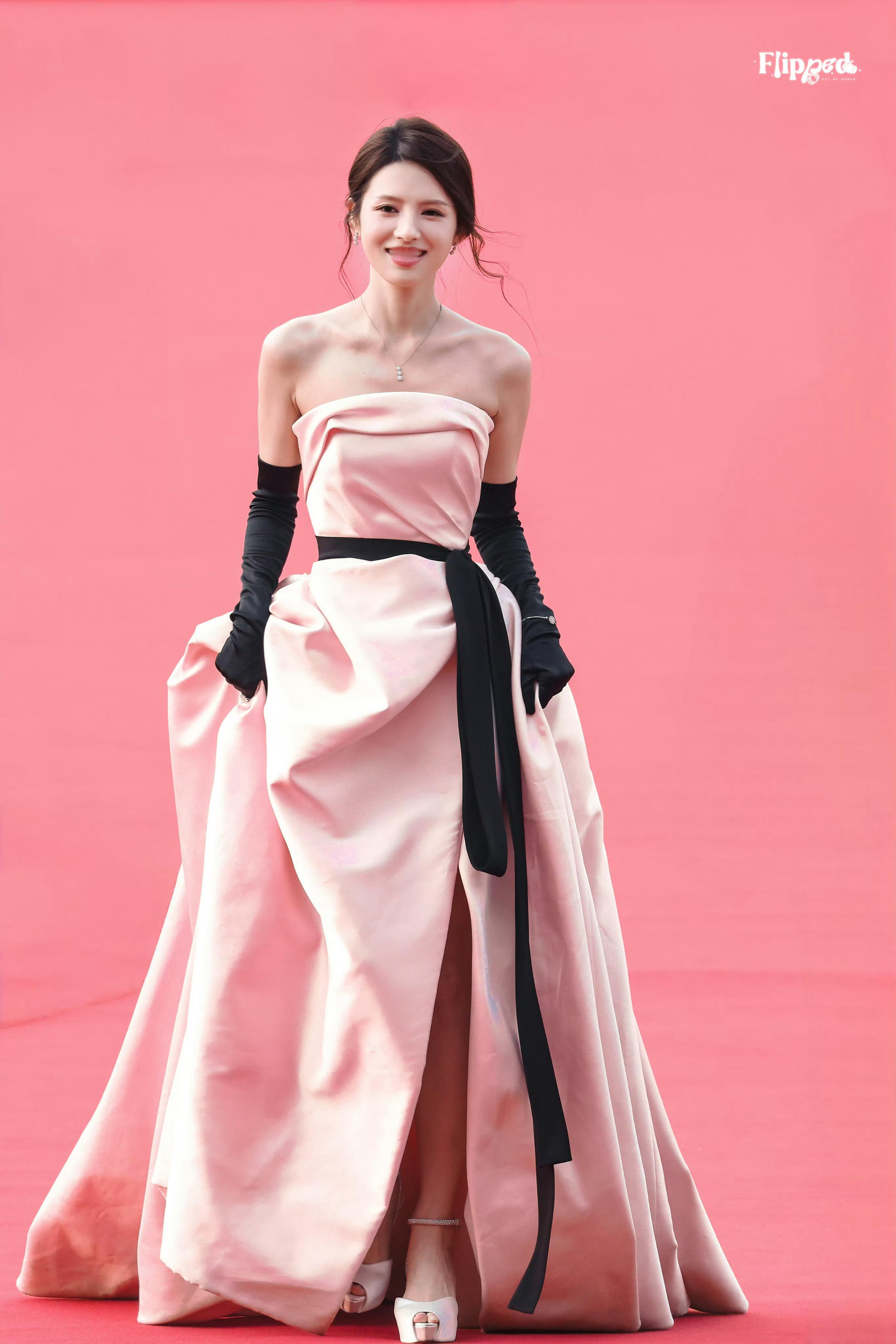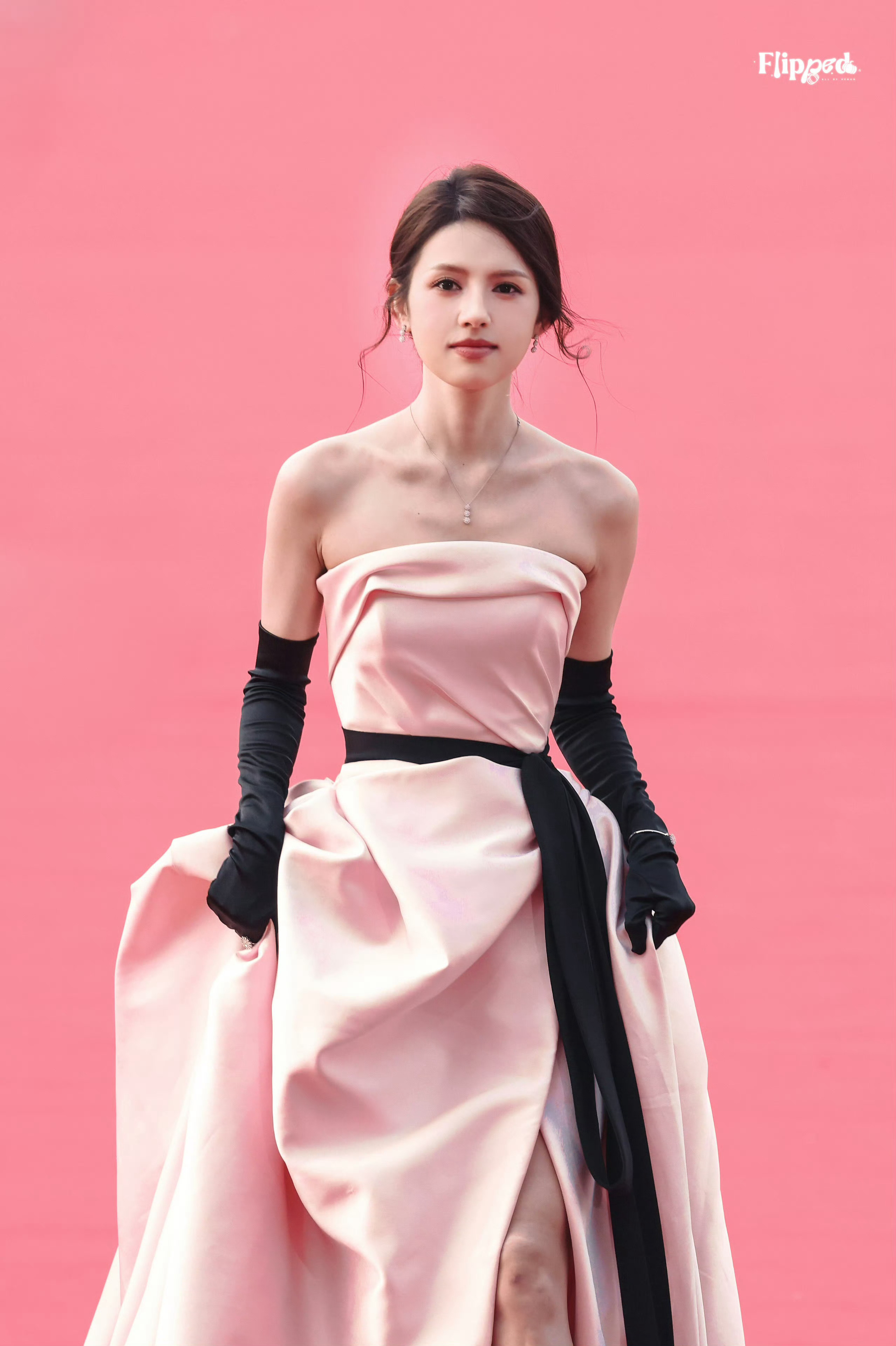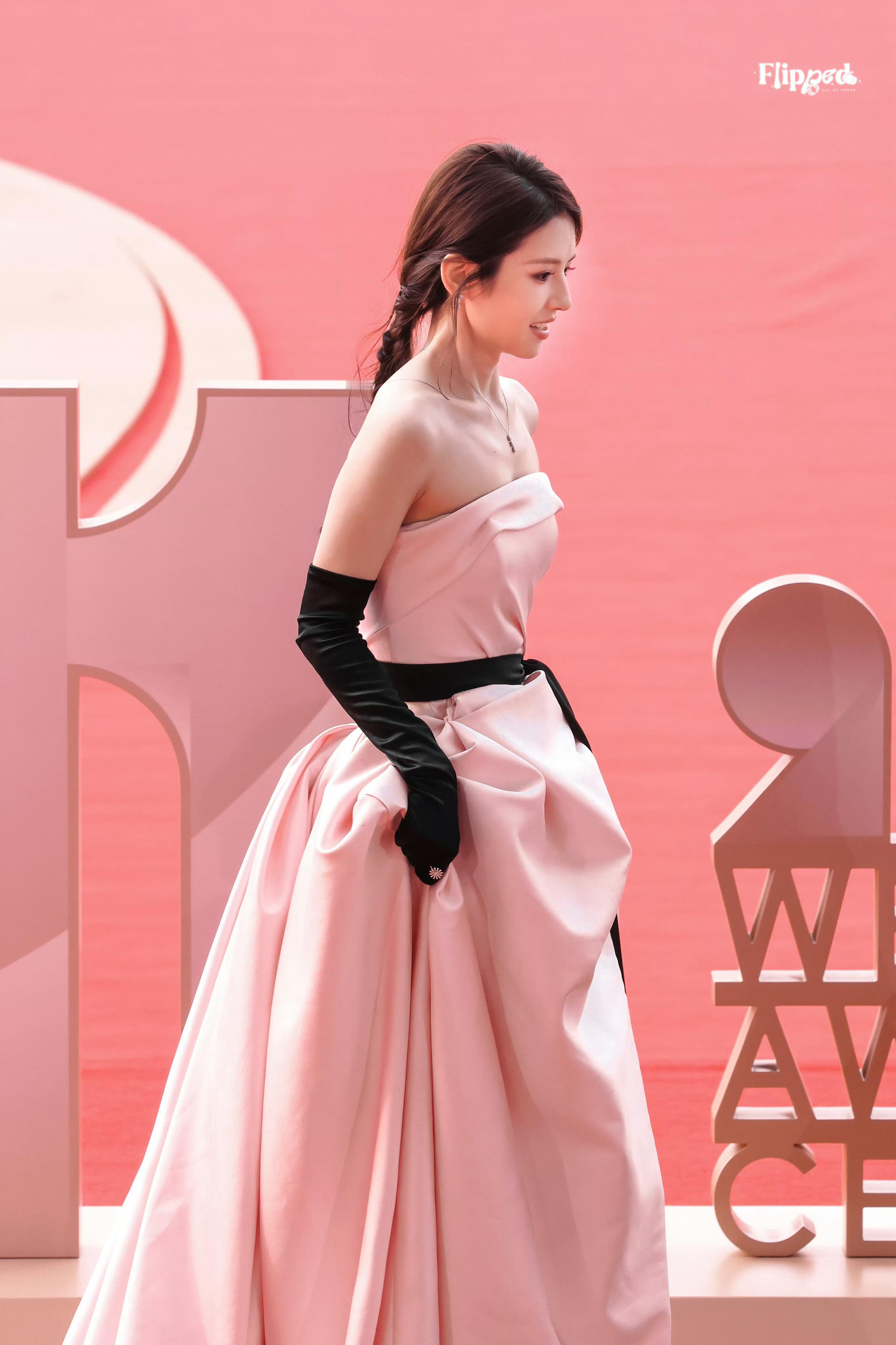 刘亦菲把死亡玫粉穿出了定制款的感觉,这种颜色普通人穿上分分钟黑三度,她居然能穿出