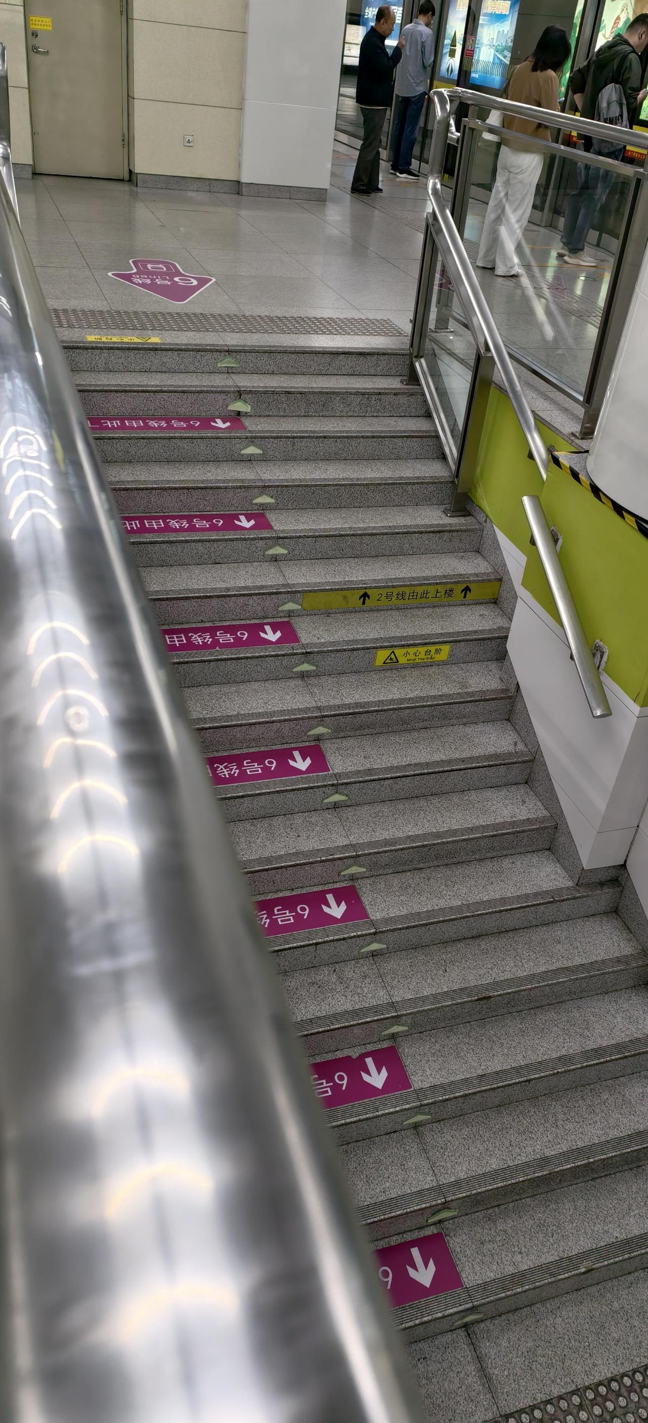 这站是2号线和6号线的换乘站。2号线在楼上,6号线在楼下。就是换成需要爬楼梯