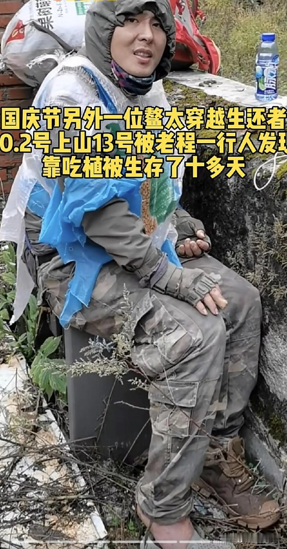 这位四年前穿越秦岭鳌太线的小陈,野外求生能力真的是太强了,被困大山十几天靠吃树皮、树叶、野草,终于等到了救援人员。 这个事件发生在2021年,他也属于非法穿越鳌太线,由于天气恶劣,一天四个季节,这会晴空万里,过一会,可能就是暴风雪气温直接下降到0度以下。 他也感到了某种危险,再走下去可能小命就要交代了,所以走了一半,就在中途下撤了。可是在下撤的途中,河水暴涨,他在过河的时候,出现了意外,携带的装备包括背包、食品、保命的帐篷、以及脚上穿着的一只鞋都被大水冲走了,好在人爬上岸了,暂时保住了命。 接着新的问题来了,在原始大山里,衣服都湿了,有没有更换的衣服,鞋子也没有了要打赤脚,吃的、喝的都没有了。 最后他发现了一个破旧的木屋,然后还看到有很多废弃的袋子,为了保暖防止失温,他把那些破旧的袋子都套在身上抵御寒冷。 最后靠吃树叶、树皮、野草,最终等到了救援人员。