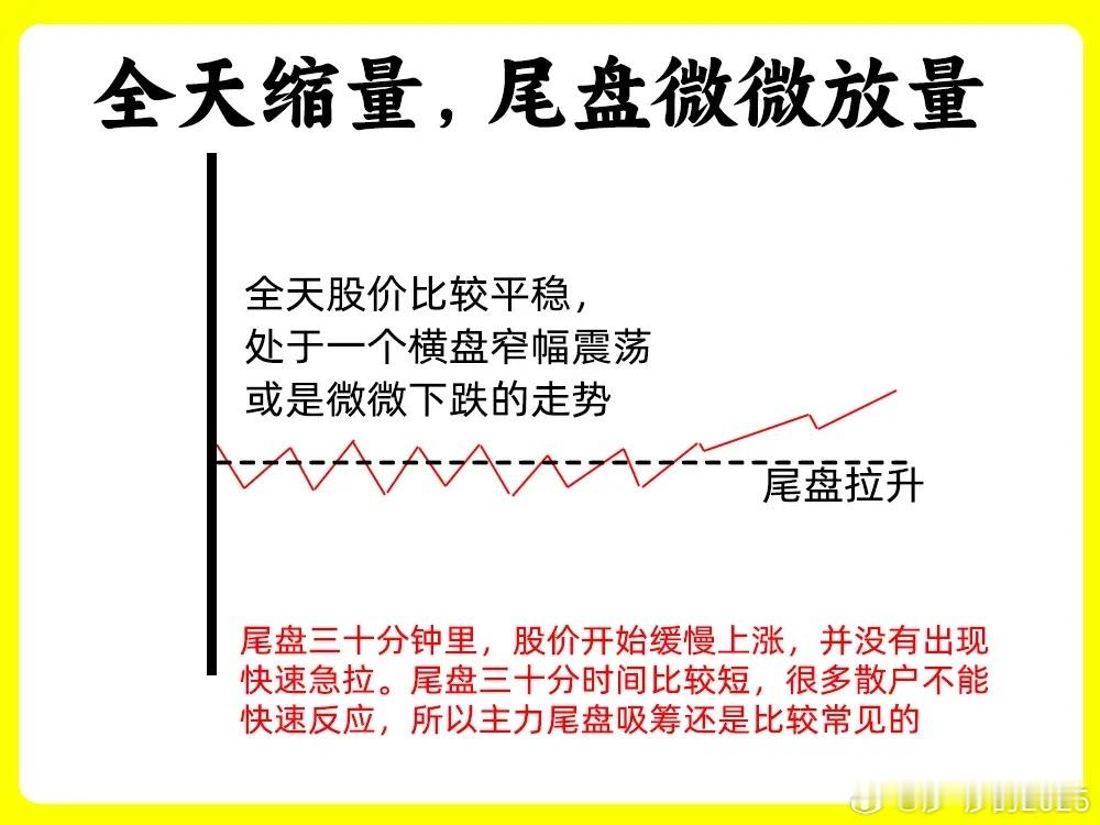 在分时图里,全天股价比较平稳,处于一个横盘窄幅震荡或是微微下跌的走势,成交量和之前对比,出现明显缩量。到尾盘三十分钟里,股价开始缓慢上涨,并没有出现快速急拉。尾盘三十分时间比较短,很多散户不能快速反应,所以主力尾盘吸筹还是比较常见的