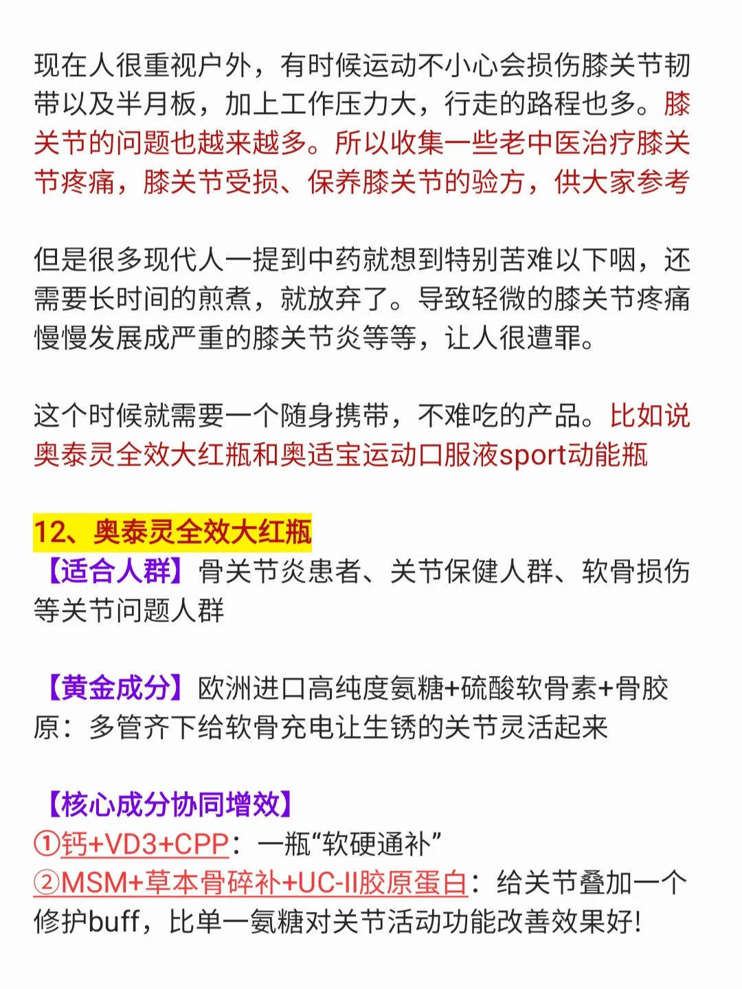 ②MSM+草本骨碎补+UC-II胶原蛋白:给关节叠加一个修护buff,比单一氨糖对关节活动功能改善效果好!