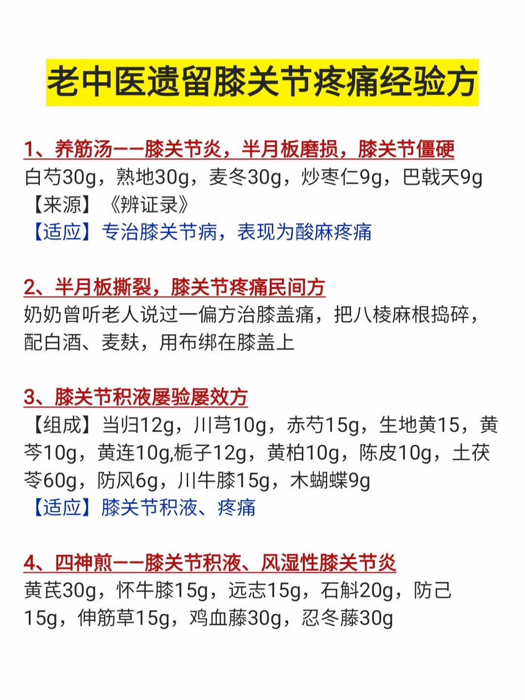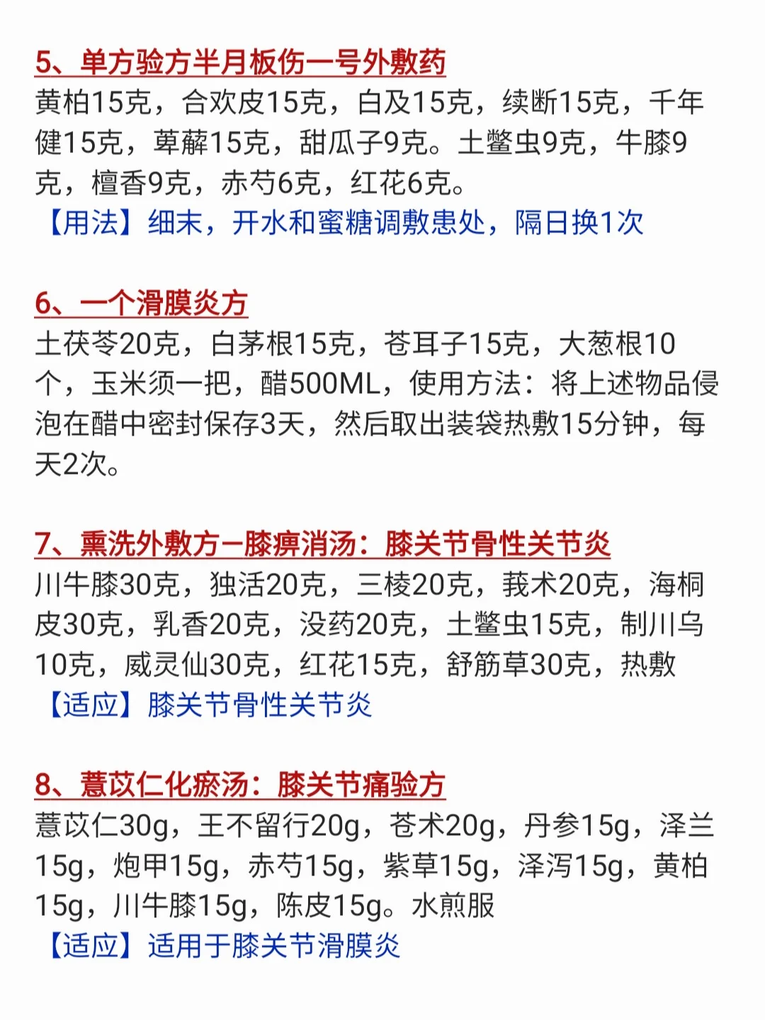 所以文章中收集一些老中医治疗膝关节疼痛,膝关节受损、保养膝关节的验方,供大家参考