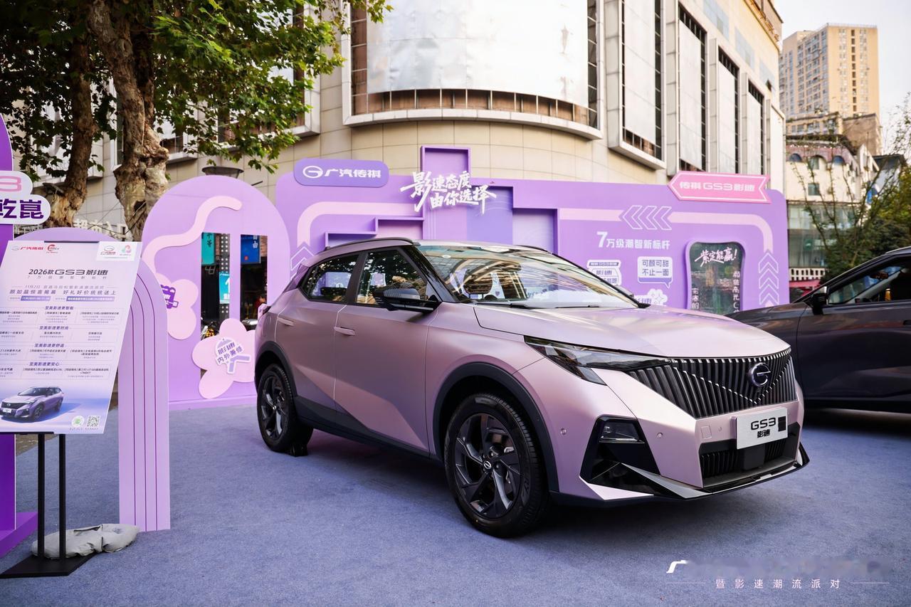 【限时价6.98万元起,2026款传祺GS3影速亮相宜昌马拉松】11月2日广汽传祺2025宜昌马拉松期间,2026款传祺GS3影速作为赛事领航车亮相,该车产自广汽传祺宜昌5G智慧工厂,定位7万级潮智燃油SUV。其官方指导价为7.98万元-9.98万元,限时惊喜价6.98万元起。新车采用潮酷设计风格,提供“一份紫”专属车色,搭载星灵智行泊车辅助系统,支持遥控泊车与融合泊车。还配备14.6英寸中控屏与 ADiGO 智联生态系统,后排座椅全平放倒后可形成1.8米空间。赛事举办期间,该车在宜昌马拉松博览会、体育中心附近及解放路步行街等地设置潮智展区与星灵智行泊车辅助体验区,供参赛选手和市民互动体验。【来自懂车帝车友圈】
