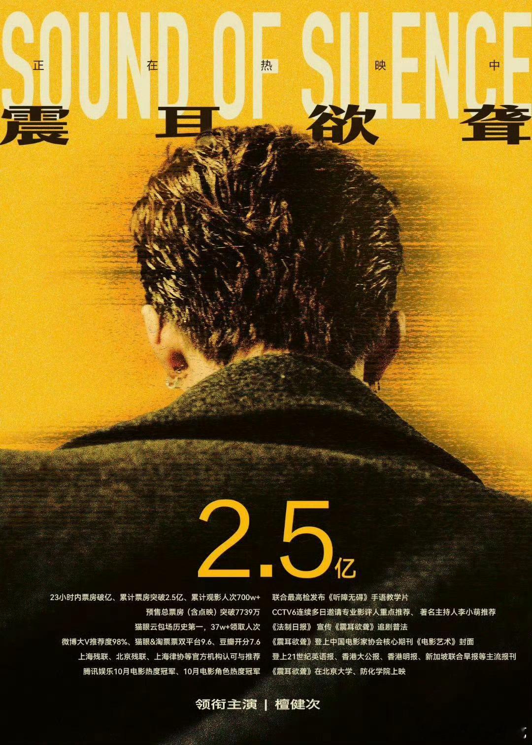 檀健次主演电影《震耳欲聋》票房破2.5亿!又一部大回报电影[赞]🎉🎉🎉震耳欲聋票房破2.5亿檀健次震耳欲聋票房破2.5亿