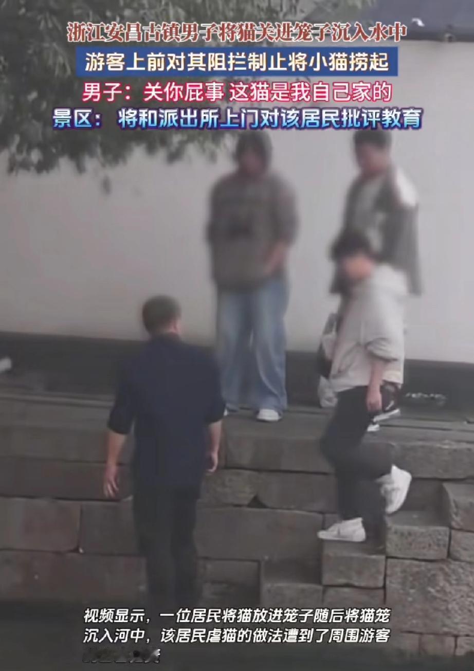浙江安吉,有个中年男子将一只猫咪关进铁笼,随后沉入河中。猫咪在水里奋力挣扎,水面泛起一圈圈水波纹。 一位小伙看到后,急忙跑过去,下水捞起了笼子。此时,猫咪趴在笼子里,一动不动。 男子一下子从小伙手中夺过笼子,转身就走。 路过的人质问男子:“你为何要弄死它?” 男子回应道:“这是我自己家的猫,我想弄死就弄死,关你何事?” 路人说:“你这么做不行,把猫放下,不然我报警了。” 男子满不在乎地说:“你想报警就报吧。”说完,便拎着猫笼子离开了。 有人把男子沉猫的视频发布到网上,网友们看后气愤不已。 安吉古镇景区回应称:“男子是本地居民,目前尚不清楚他溺猫的原因,景区工作人员会和民警一同上门对他进行批评教育。” 实际上,男子虐猫的行为与景区并无关联,这只是个人素养问题,或许是他缺乏善心。 一只小猫究竟哪里得罪了男子呢? 亲手将一个小生命放入水中,眼睁睁看着它在水里苦苦挣扎直至死去,这得有多狠心啊? 善良也会传承的,每一个生命都应被温柔以待,猫咪更是如此。它们不仅能给予主人最治愈的温暖陪伴,还是默默奉献的“功臣”:小区里有流浪猫,就能有效防止鼠患;作为蛇的天敌,它们还能悄然守护一方安宁,以自己的方式守护着人类与环境。 愿我们人类能与猫咪、犬类和平相处,互相成全美好生活。 来源:百姓关注