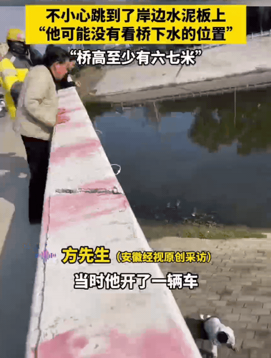 “万万没想到!”河南太康,方先生路过的时候,看到一个男子把车停到桥上。下了车,直接从桥上跳下去了。方先生赶紧去看,往下一看男子并没有掉进河里,直接掉到了河提上。 真是万万没想到,跳河没有跳进河里。跳到河堤的水泥板上,男子应该受伤不清。桥面距离河堤也有6、7米高。男子掉下去后,趴到地上都懵了。缓了一会儿才能动。 有人拨打了急救电话,急救人员很快就来了,男子被救护车拉走了。 男子有多冲动啊,看都不看就往下跳。不知道这是不是好事,希望他伤的不严重。 网友说,经过这一跳,情绪发泄了,以后就会好好活着。 还有网友说,原本是一个悲伤的故事,怎么都觉得有点搞笑。 确实是,跳河都没跳进河里,这命也挺大的。不过,摔伤了也受罪。好在2层楼高应该不会摔太重。 不是压力大,不是遇上了难事谁也不会选择跳河吧。希望男子经过这一次,能够敢于面对困难,有直面生活的勇气。
