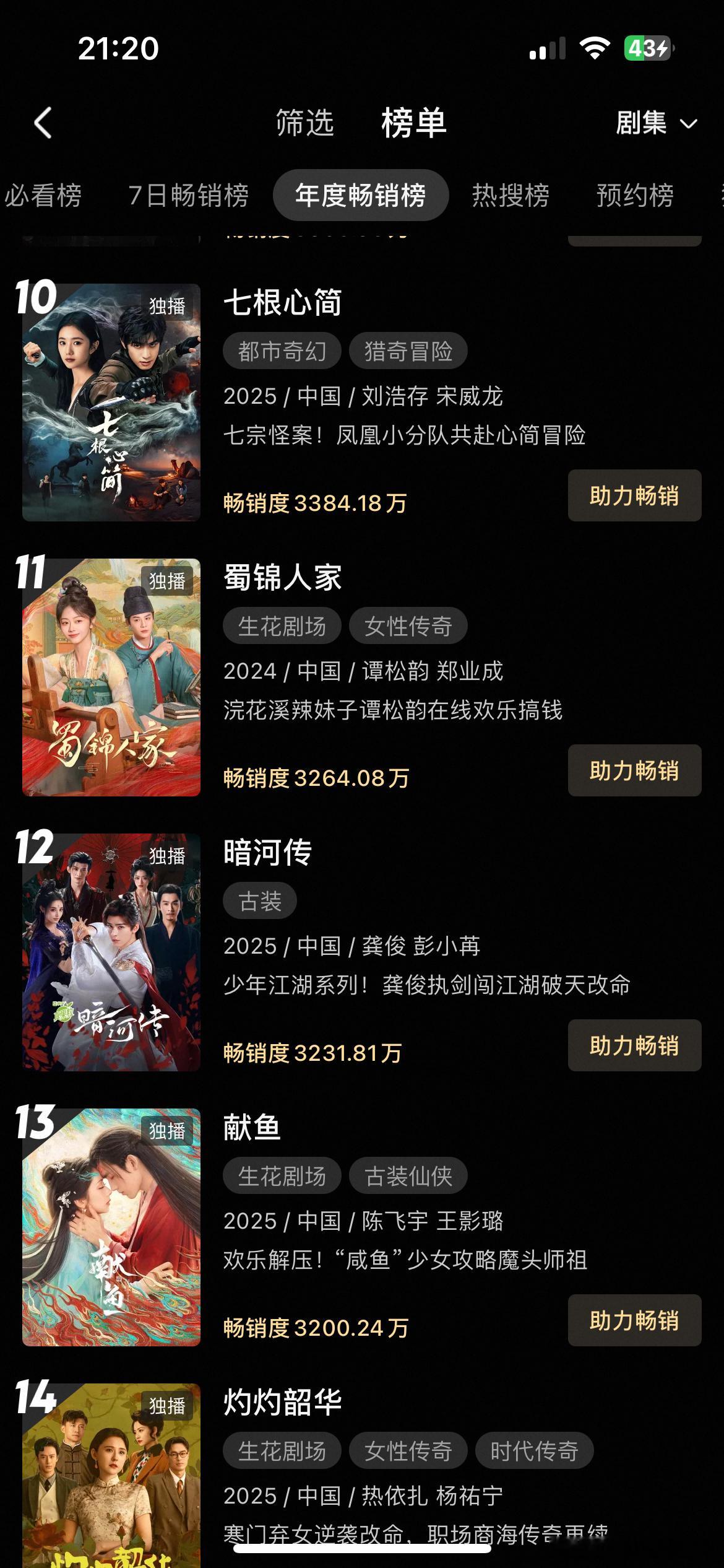 龚俊暗河传 最高优酷热度10018,实时9874,经典畅销榜(年榜)升至12,数值3231.8w