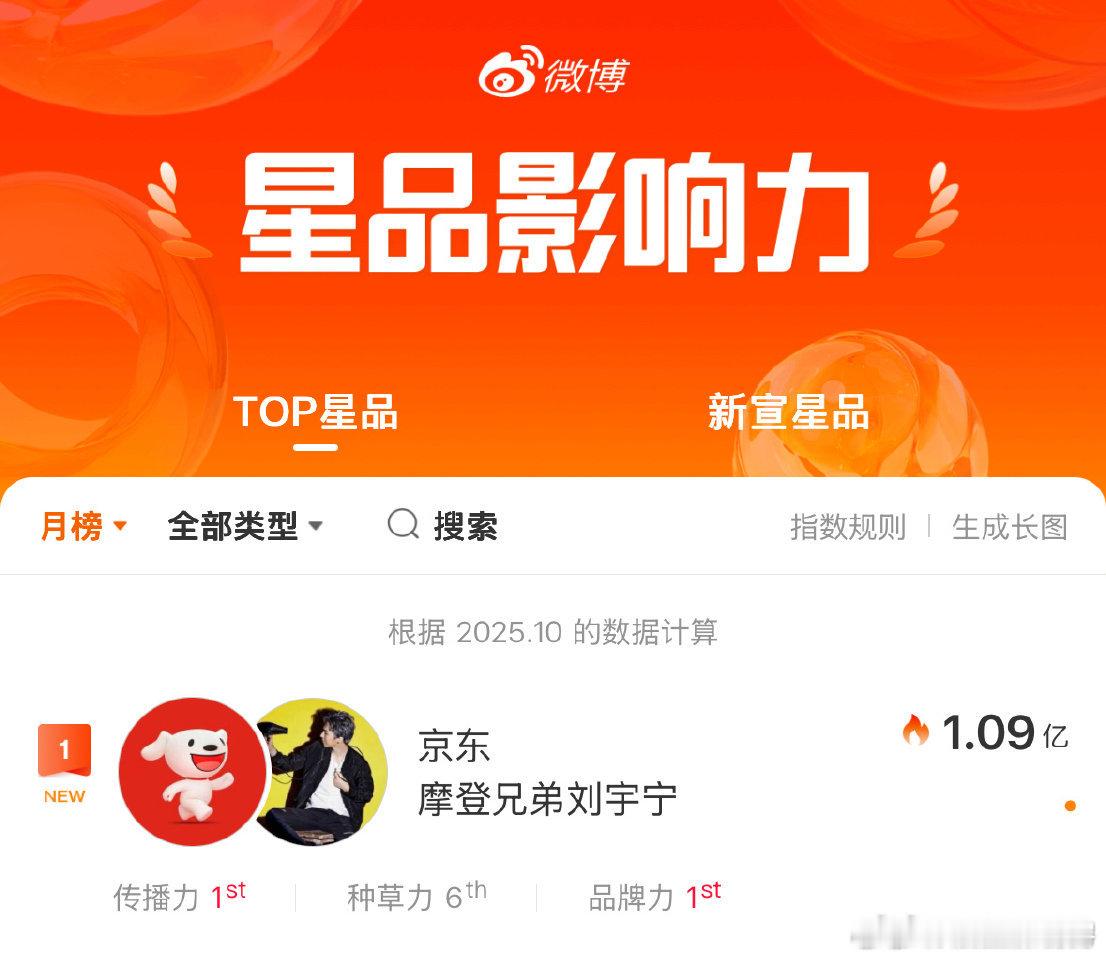 星品指数1.09亿,拿下10月第一