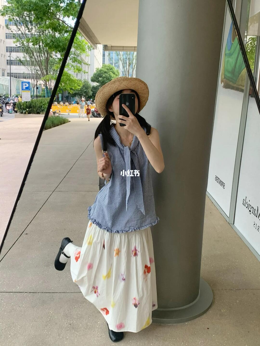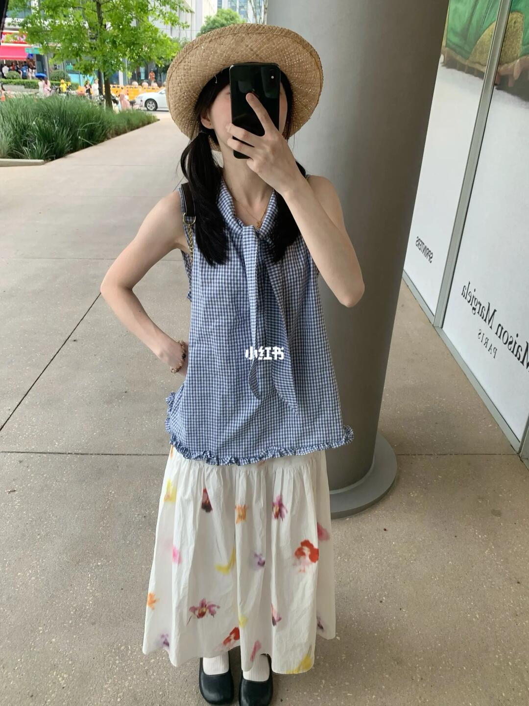 夏日清新穿搭,条纹背心+高腰短裤,轻松自在,元气满满!🌞👗💃