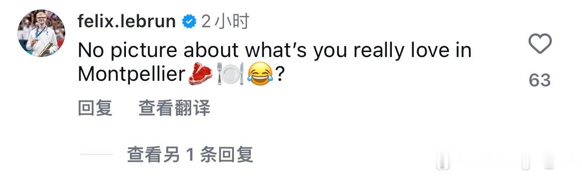 Felix评论:没有图片关于你在蒙彼利埃真正爱的🥩🍽😂吗?