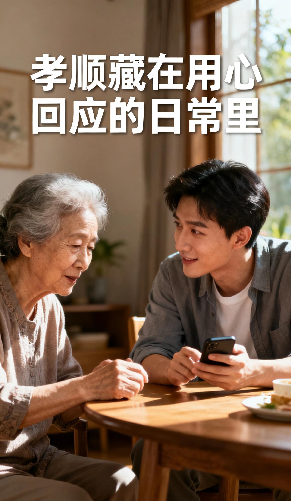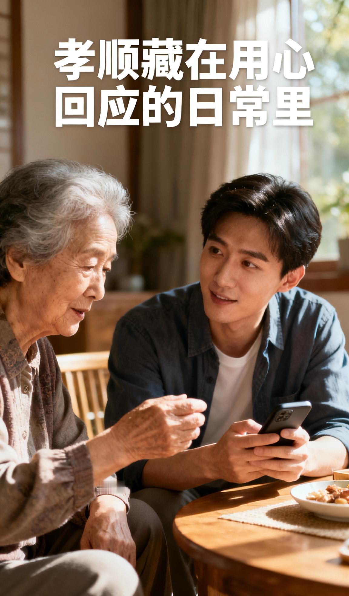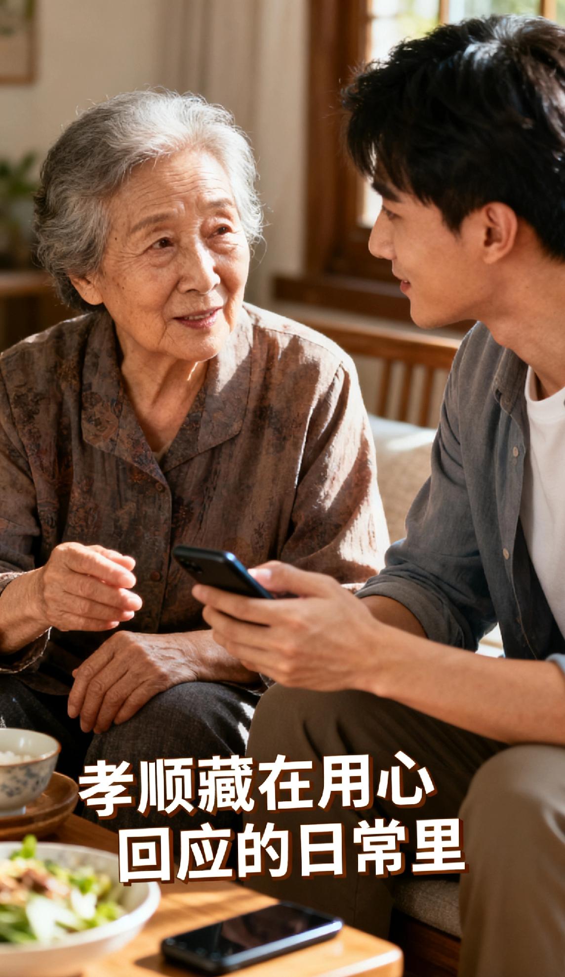 什么才是老人需要的孝顺? 宝子们,总以为孝顺是物质堆砌,其实老人要的从不是昂贵的礼物。是耐心听他们重复十遍的家常,是记住他们念叨的小事,是放下手机的片刻陪伴,常回家看看!是让他们觉得自己仍被需要的安心。孝顺从不是轰轰烈烈,而是藏在每一个用心回应的日常里。最后感谢我的粉丝友友们,你们的关注让这些温暖话题被更多人看见,感恩一路同行~ 孝顺父母 世上最好孝顺