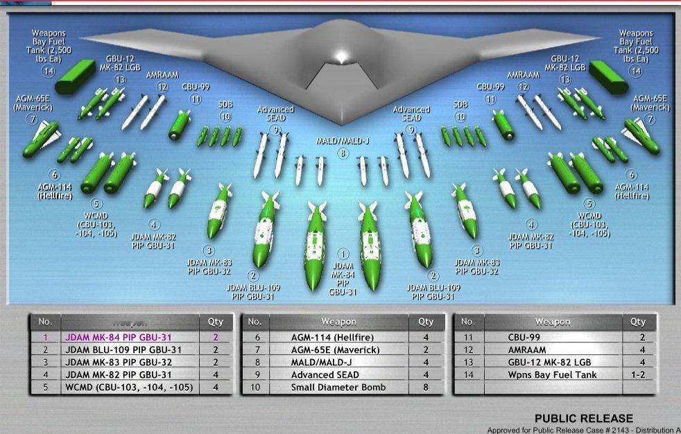 🔻相对于飞翼构型,曲柄风筝的内置弹舱可以做的更长一些,不过隐身性能比飞翼稍差。