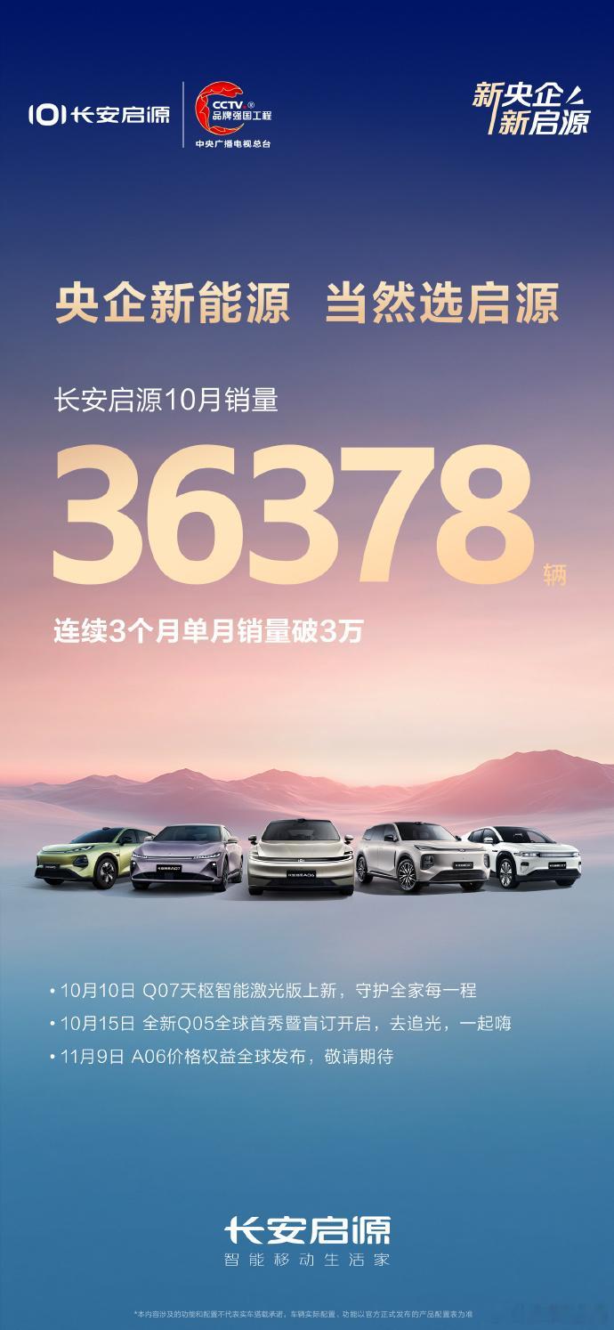 长安启源公布10月销量新车情报局日前,公布10月销量,10月共计销售新车367378辆,连续3个月单月销量破万。而旗下全新中型SUV——启源Q07单车月销量达11637辆,累计销量已达79935辆。