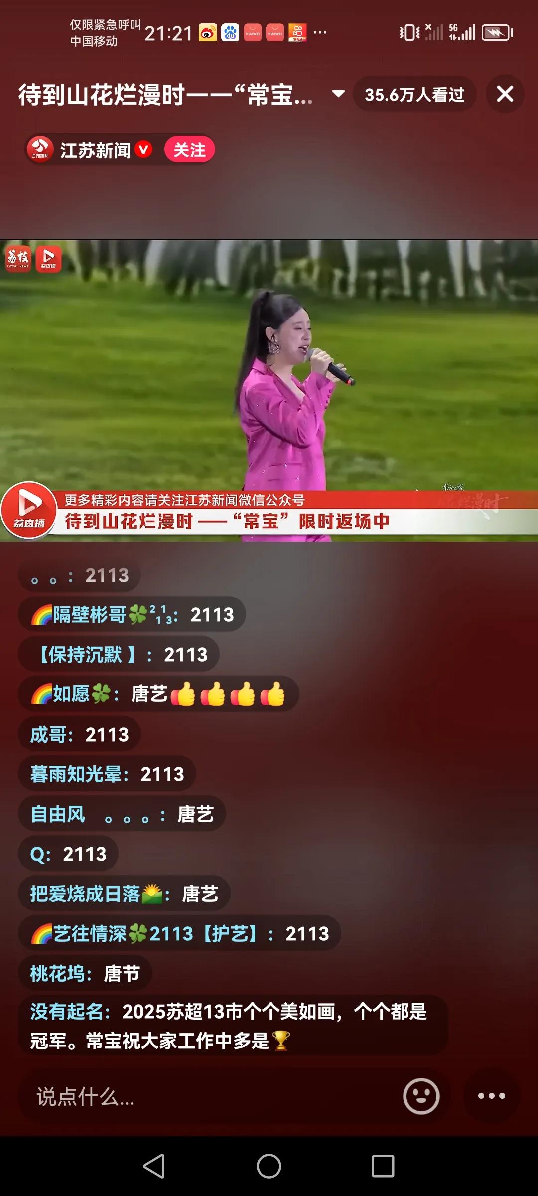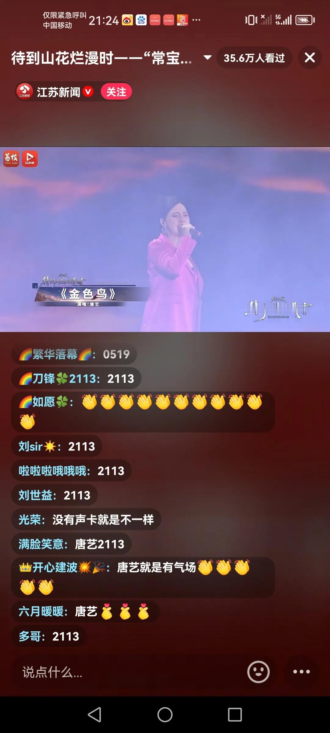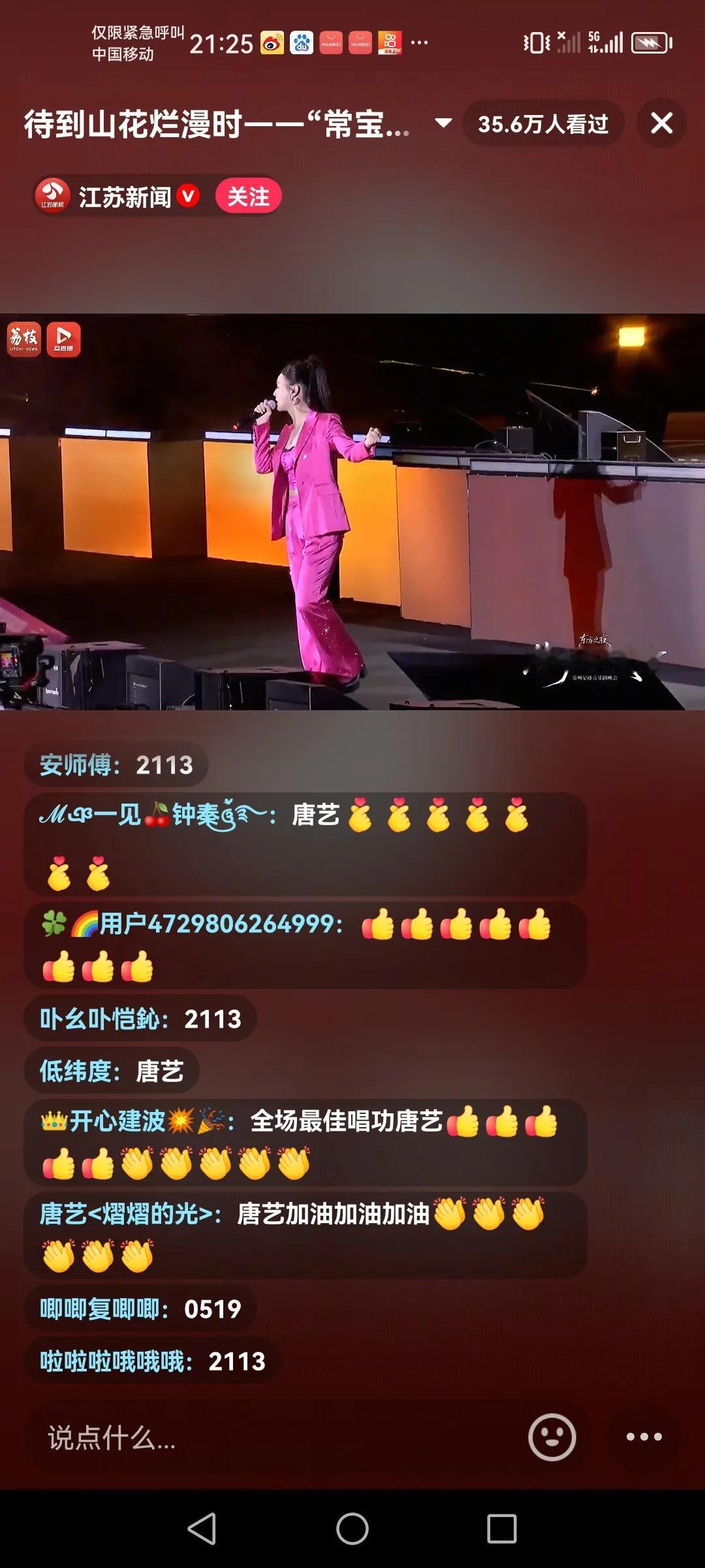 可以的啊!唐艺在江苏常州的足球音乐剧之夜的演唱会。现场主持人也两次提到了唐艺及小艾(唐艺大徒弟),而且全网当时霸屏了,全是刷唐艺跟2113,2113是唐艺粉丝们的称号,就是爱艺一生的谐音差不多了吧!当时光江苏新闻的直播就三十多万人,全网接近一百万了。 唐艺是最后出场压轴的,唱了三首歌,苹果香,金色鸟等。相信唐艺的未来的路一定会更好,当年疫情期间还给河北,湖南当地等都揖捐了物资,正能量的人,一定不会差,以上仅供参考,湖南女声音唐艺 唐艺大舞台
