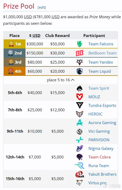 Falcons在裂变天地的比赛中3比1战胜BB夺冠!选手获得了30万美元奖金,俱乐部获得了5万美元奖金,参加本次比赛的VG获得了15000美元的奖金,YB获得了10000美元的奖金dota2