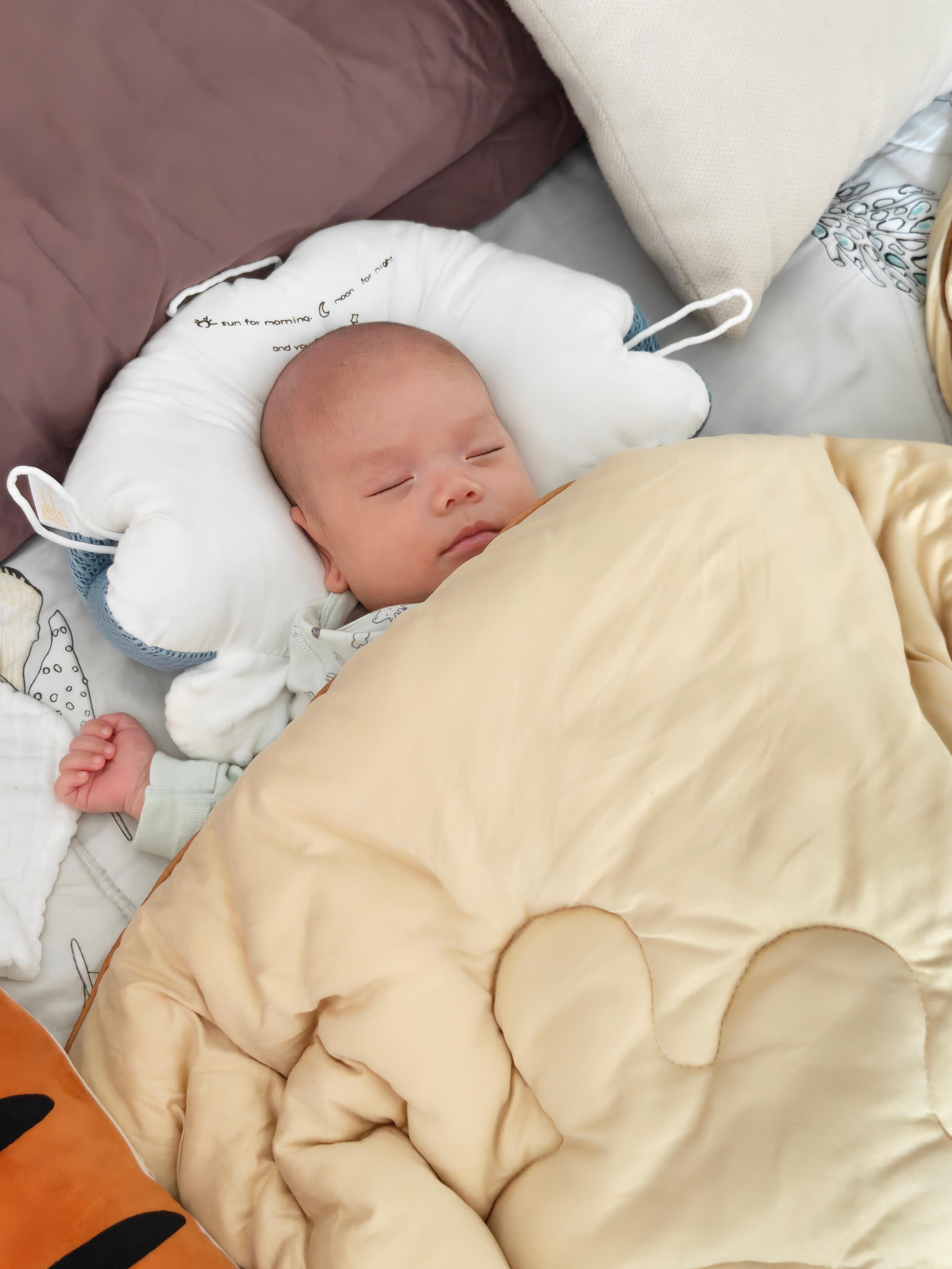 然后睡到现在,这会儿差不多该醒了,换尿不湿,喂奶,然后玩一会等我们吃晚饭又可以睡觉了