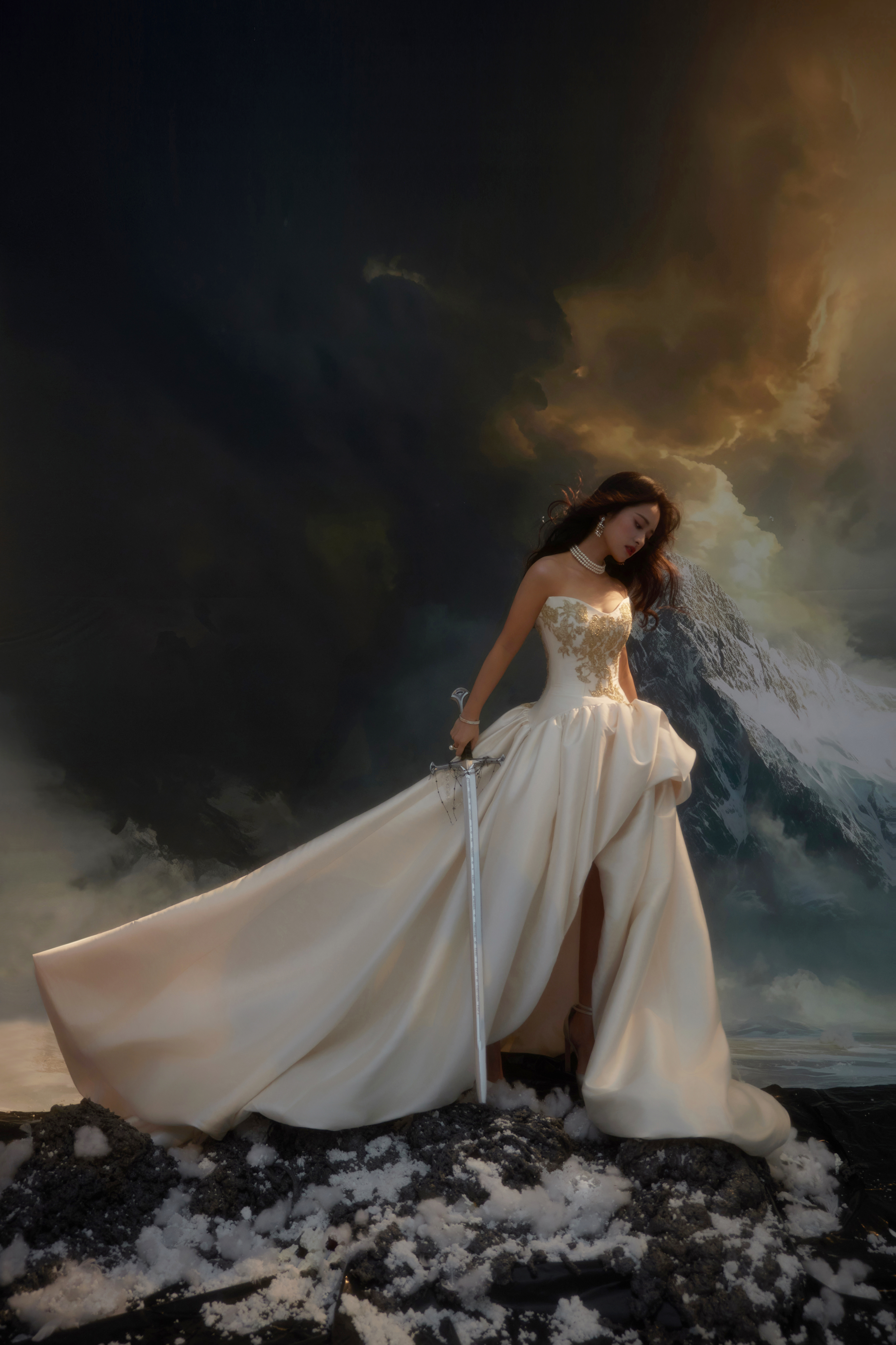 沈月 冰雪为疆,裙摆成帆,她是在极境中执掌星光的公主,以婚纱作甲,于冰封之域书写属于自己的传奇篇章。沈月 是公主也是自己的骑士
