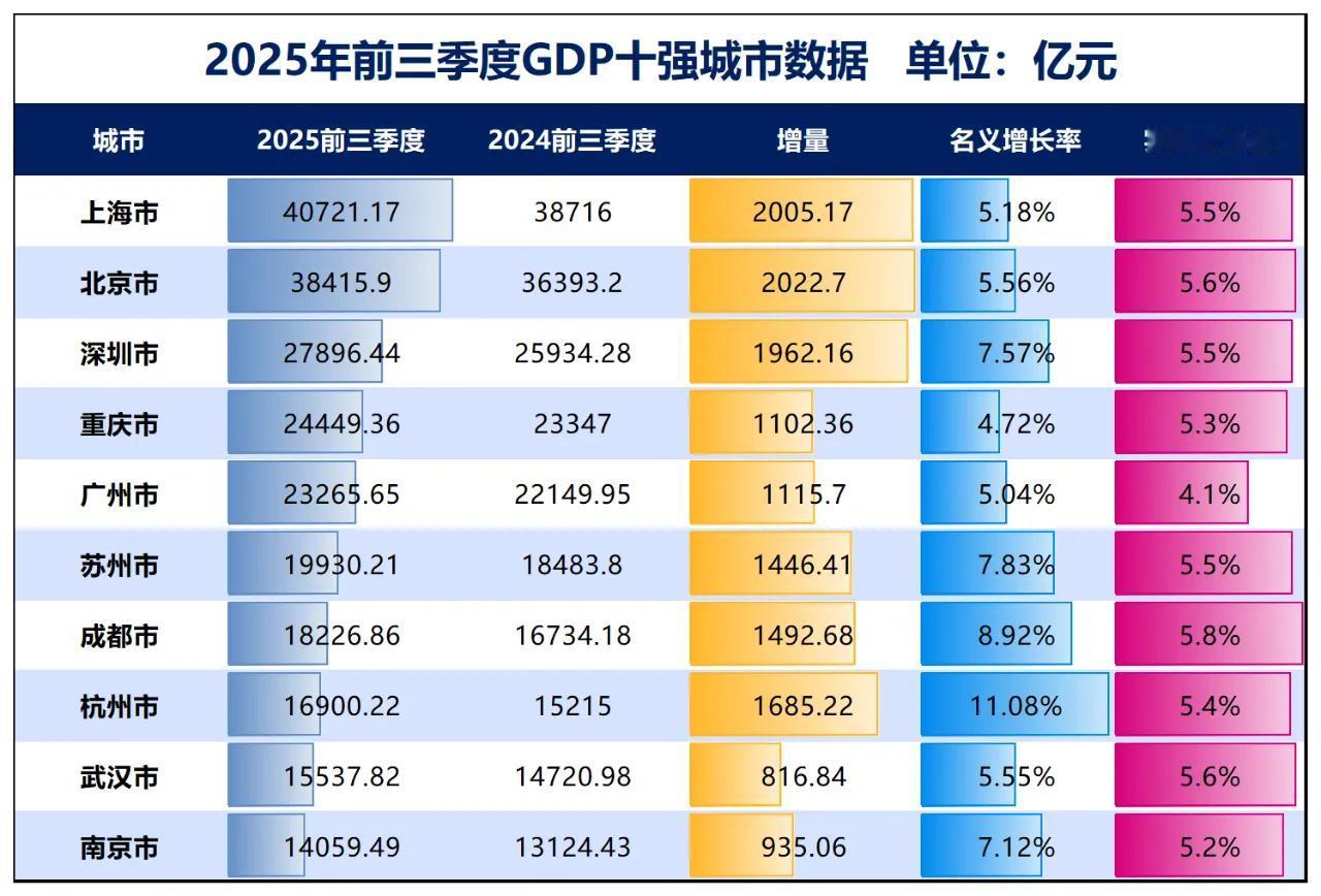 看到这个数据,有几个疑问: 1、前十名中只有北京这一个北方城市,确实有点孤单,大胆猜想一下,10年、20年后,有没有可能有一个新疆城市杀进十强?2、前3名的格局基本上稳定了,重庆能不能坐稳第4?3、会不会还有黑马能杀进前十,6-10中哪个城市会先掉队?2025gdp 2025年经济