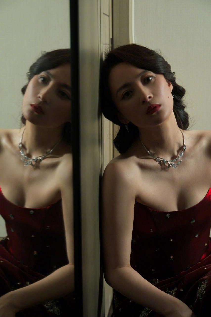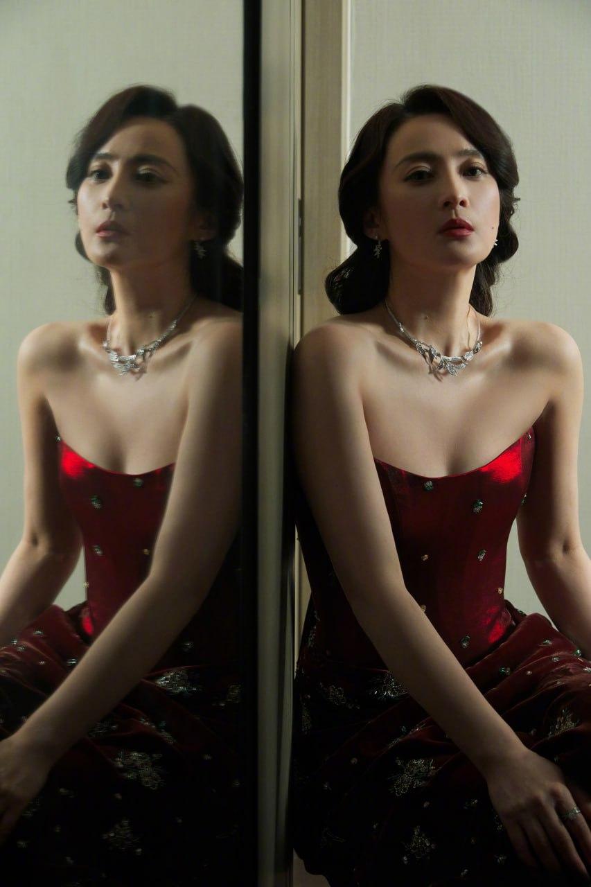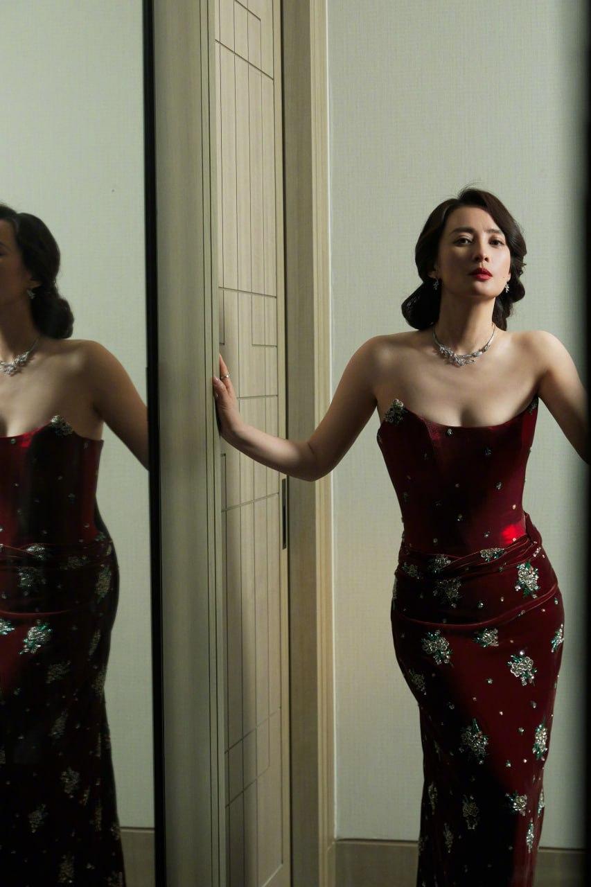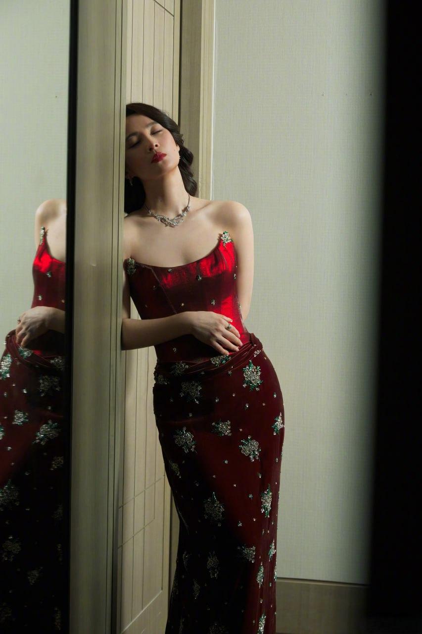 电影奇遇夜活动造型 红色丝绒抹胸长裙太火辣了女神 辣妹穿搭 优雅气质 美背杀