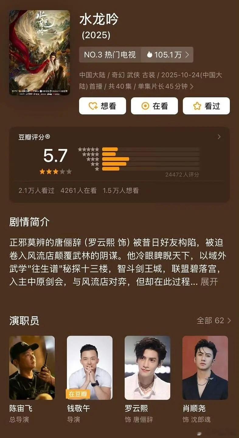 暗河传五万人评分 水龙吟两万人 山河枕六千