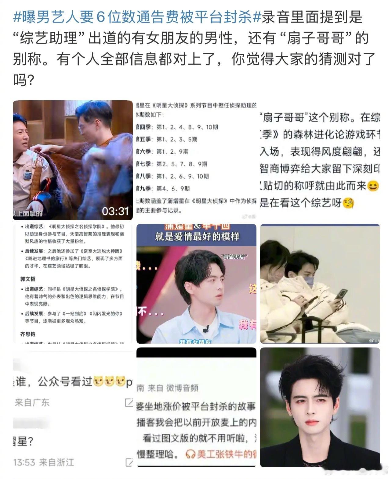 蒲熠星 通告费曝男艺人要6位数通告费被平台封杀