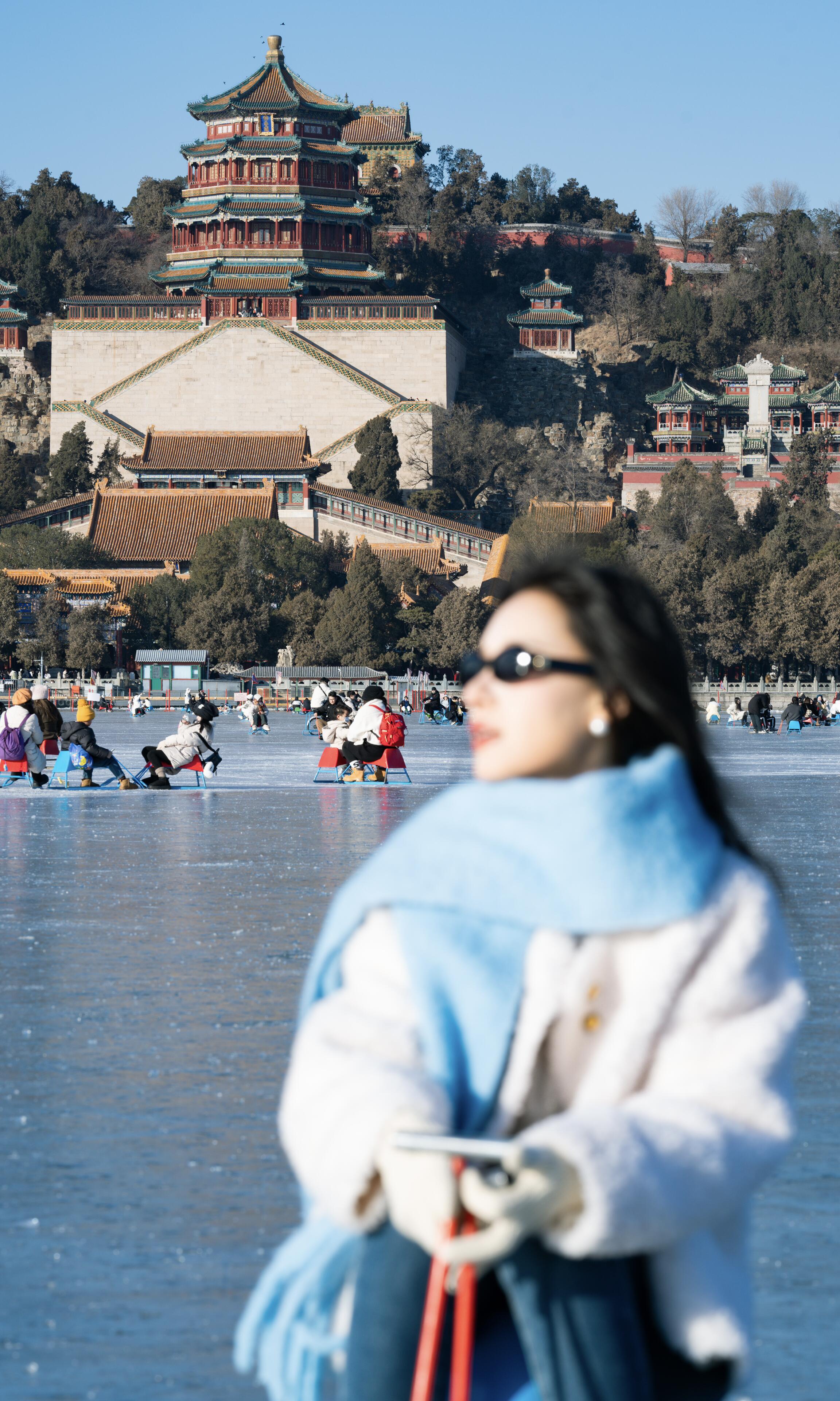 我再一次被老祖宗的审美折服~这是一年中zui冷的时刻, 但也是zui 快乐的时刻,冰冻的昆明湖上, tai多人伴着日落嬉笑着滑着冰, 冰封的北方冬日很美好~