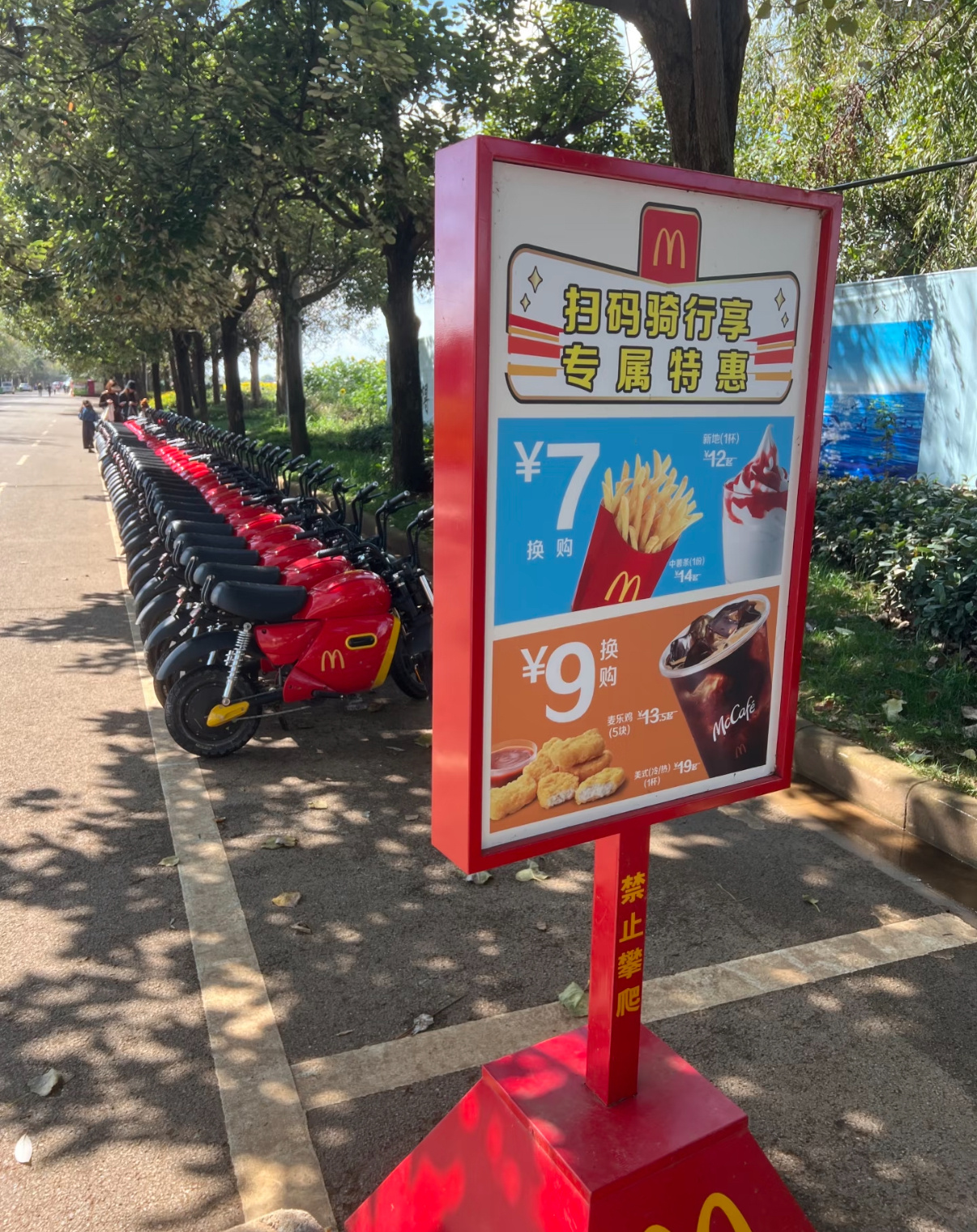 麦当劳居然还有这个产业?这共享电单车还怪可爱的~