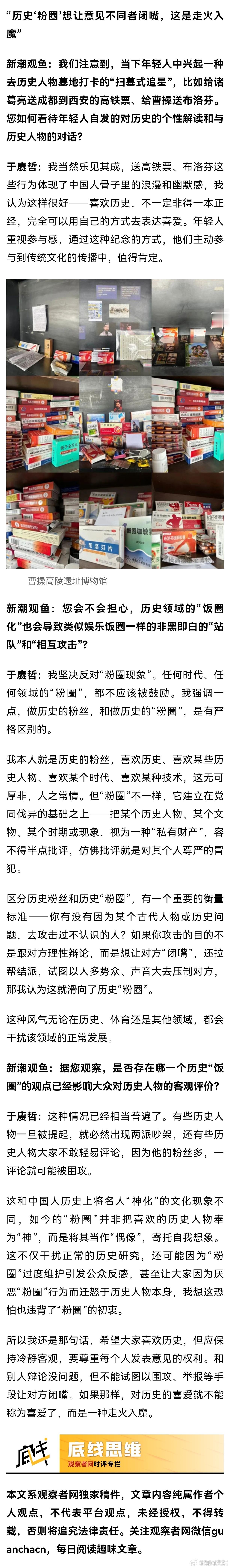 同时,他也呼吁公众在热爱历史的同时警惕“粉圈化”倾向,理性客观地看待历史人物与事件——做历史的粉丝,不要做历史的“粉圈”。